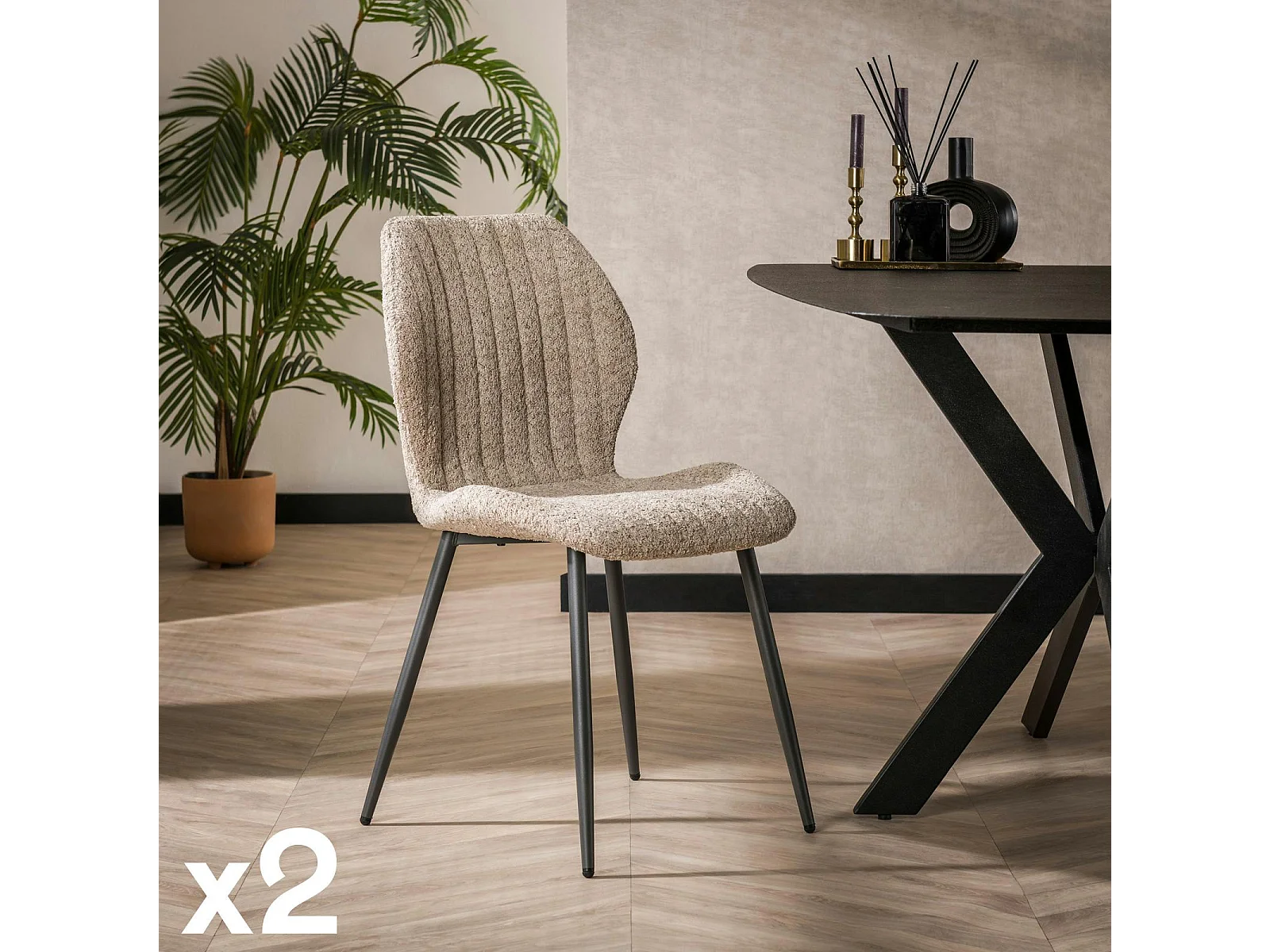 Chaise en bouclette sable à rayures (lot de 2) GALWAY