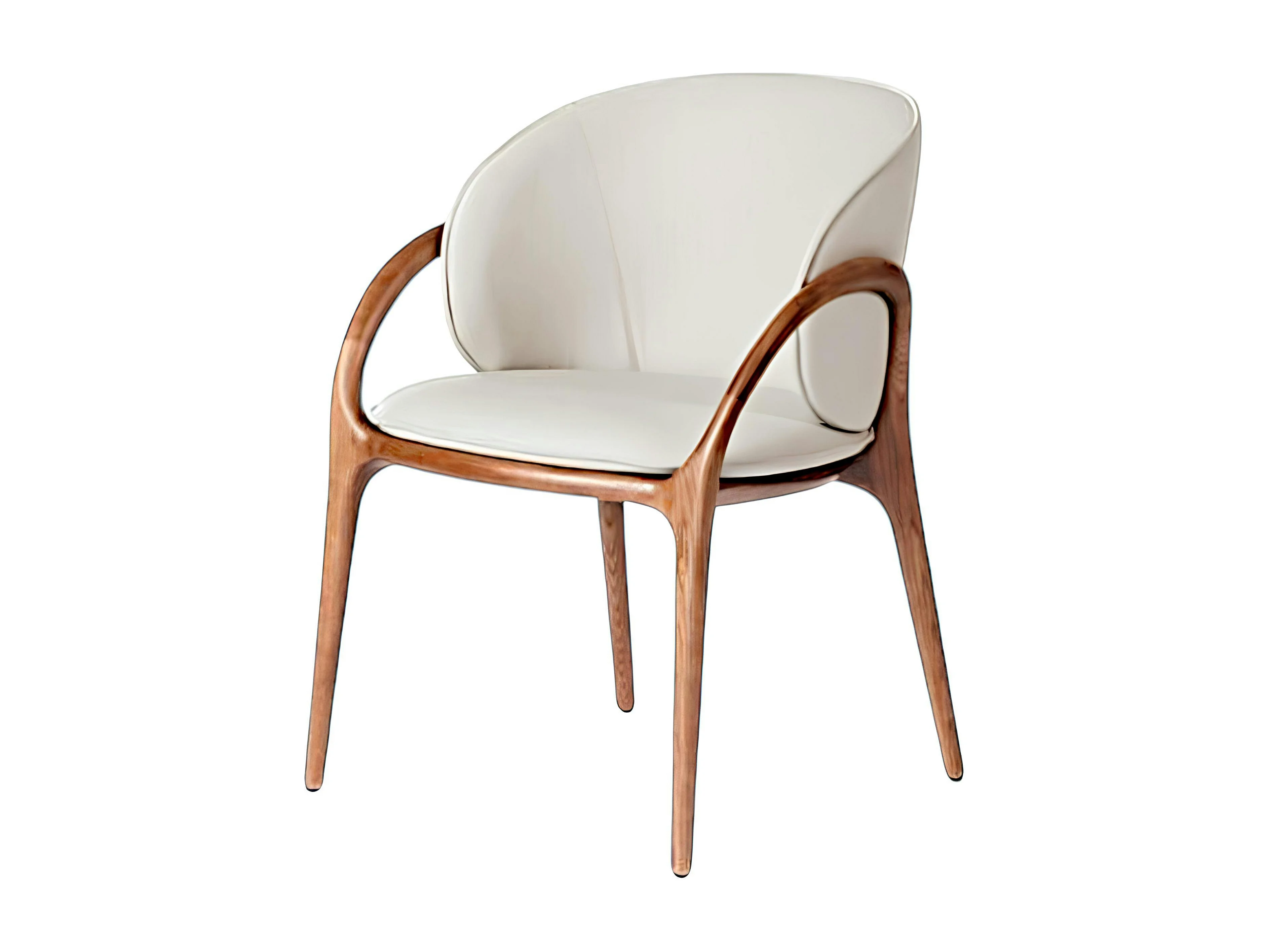 Chaise en cuir gris clair dos rond accoudoirs bois brun ALDER
