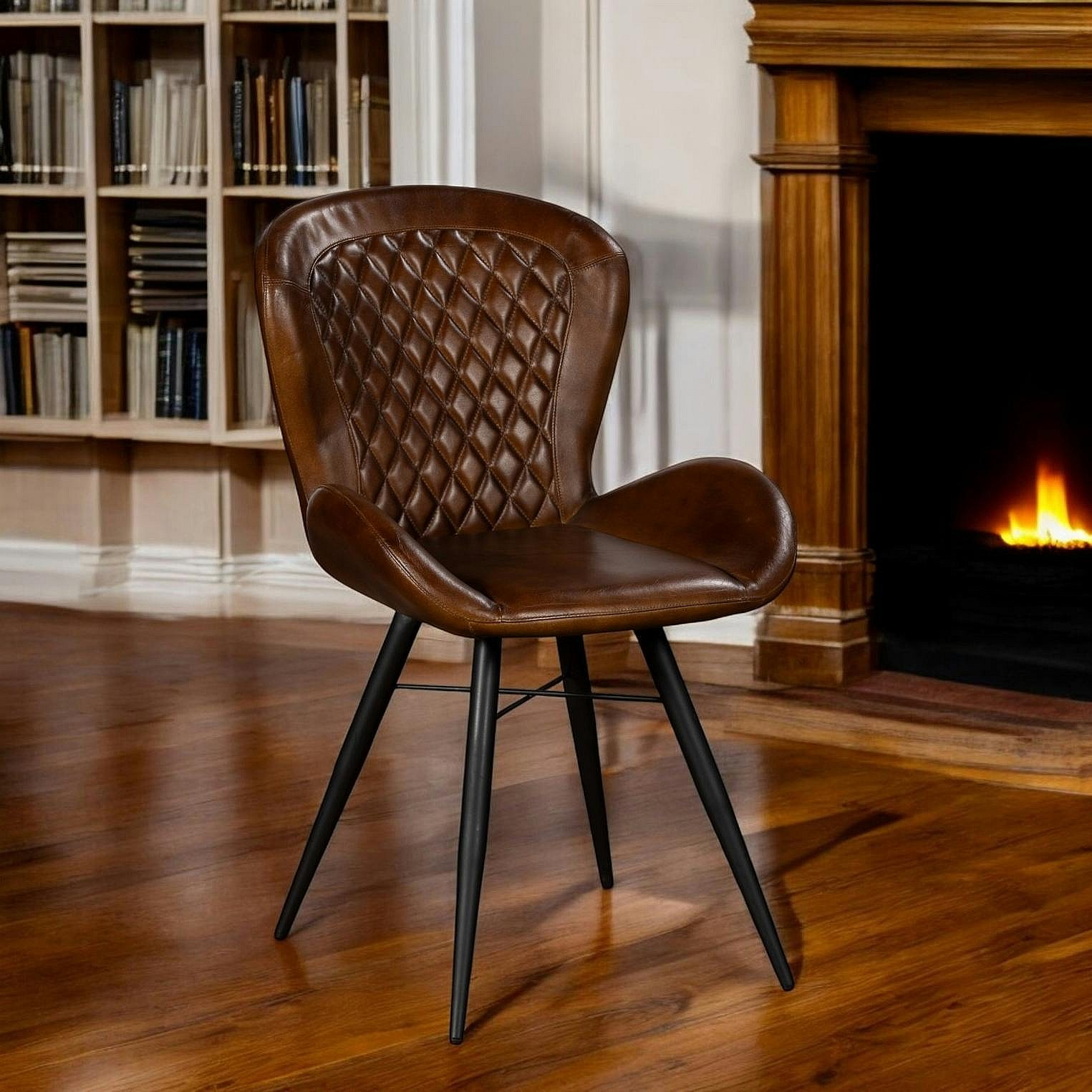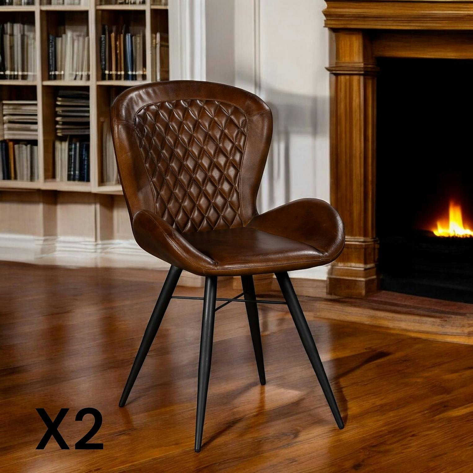Chaise en cuir marron avec motif losange (lot de 2) MASSA