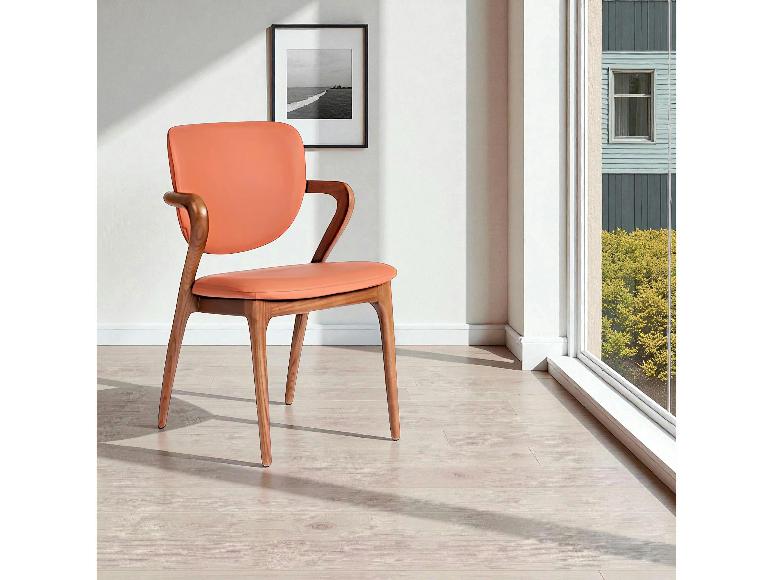 Chaise en cuir terracotta, accoudoirs bois brun ALDER