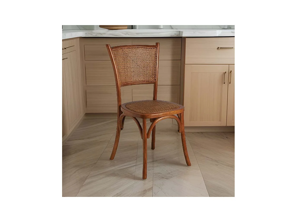Chaise en hêtre et rotin avec dossier en cannage unitaire