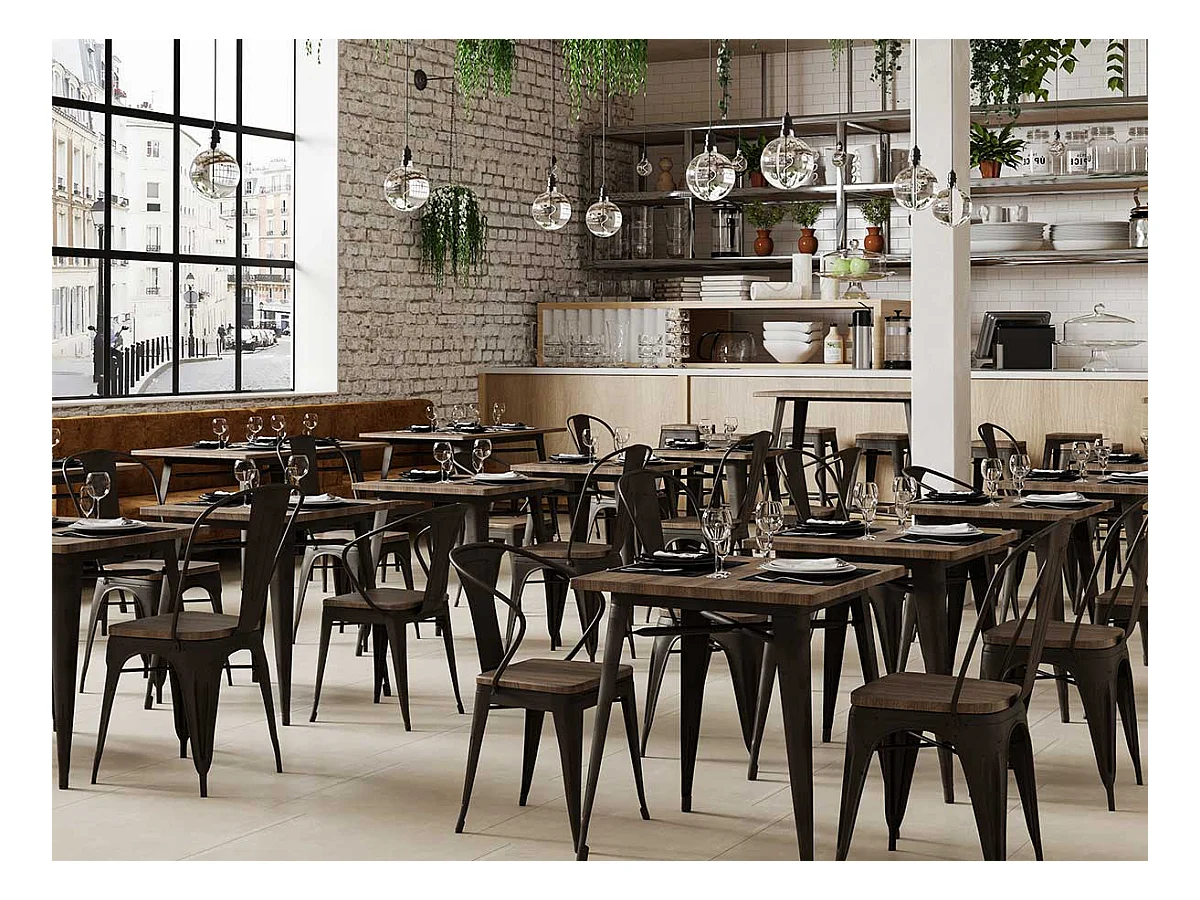 Chaise en métal avec assise en bois d'orme - Bistro - Noir