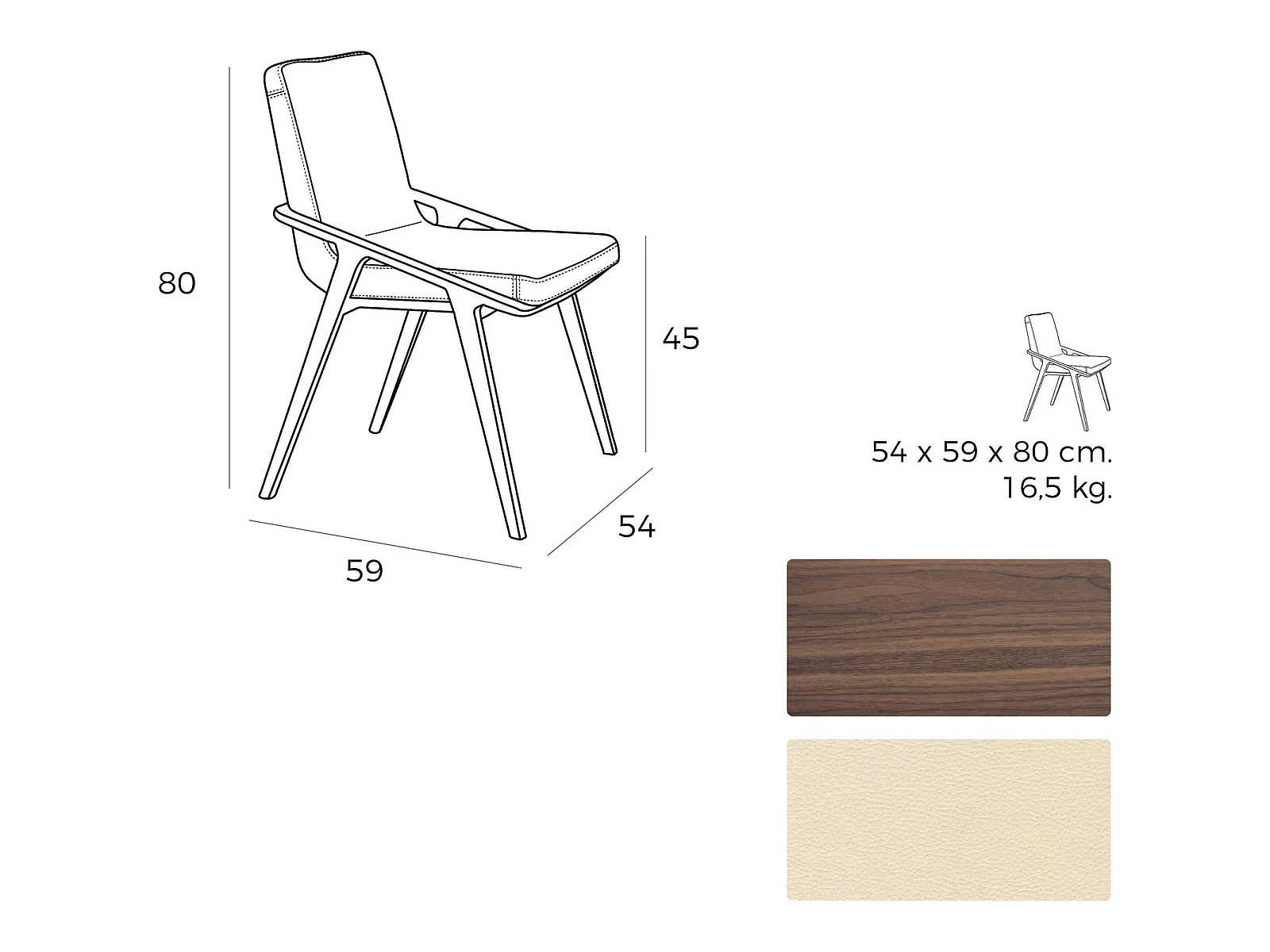 Chaise en noyer avec assise rembourrée