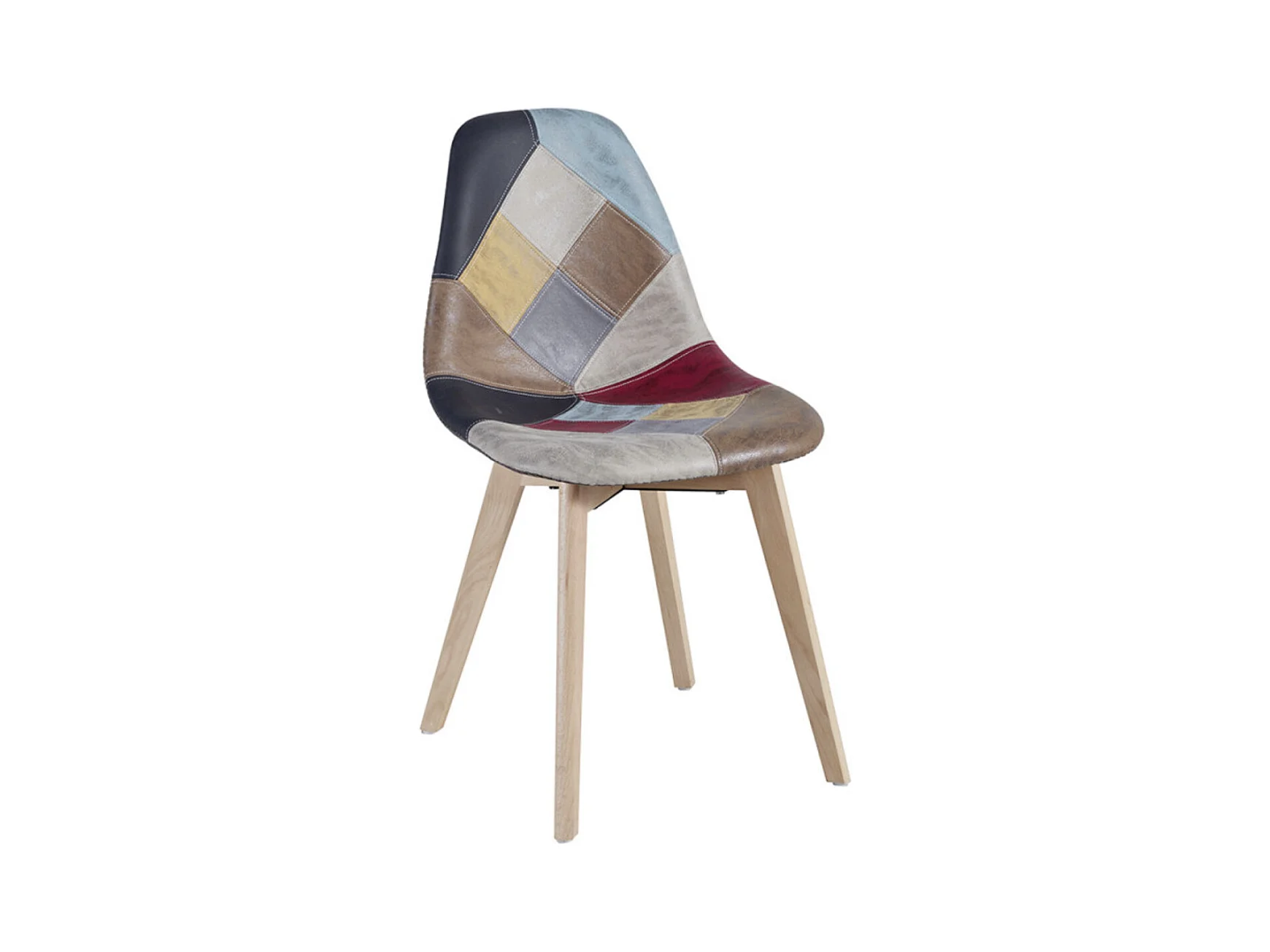 Chaise en similicuir patchwork rouge et pieds en hêtre massif clair – Modèle Vinko