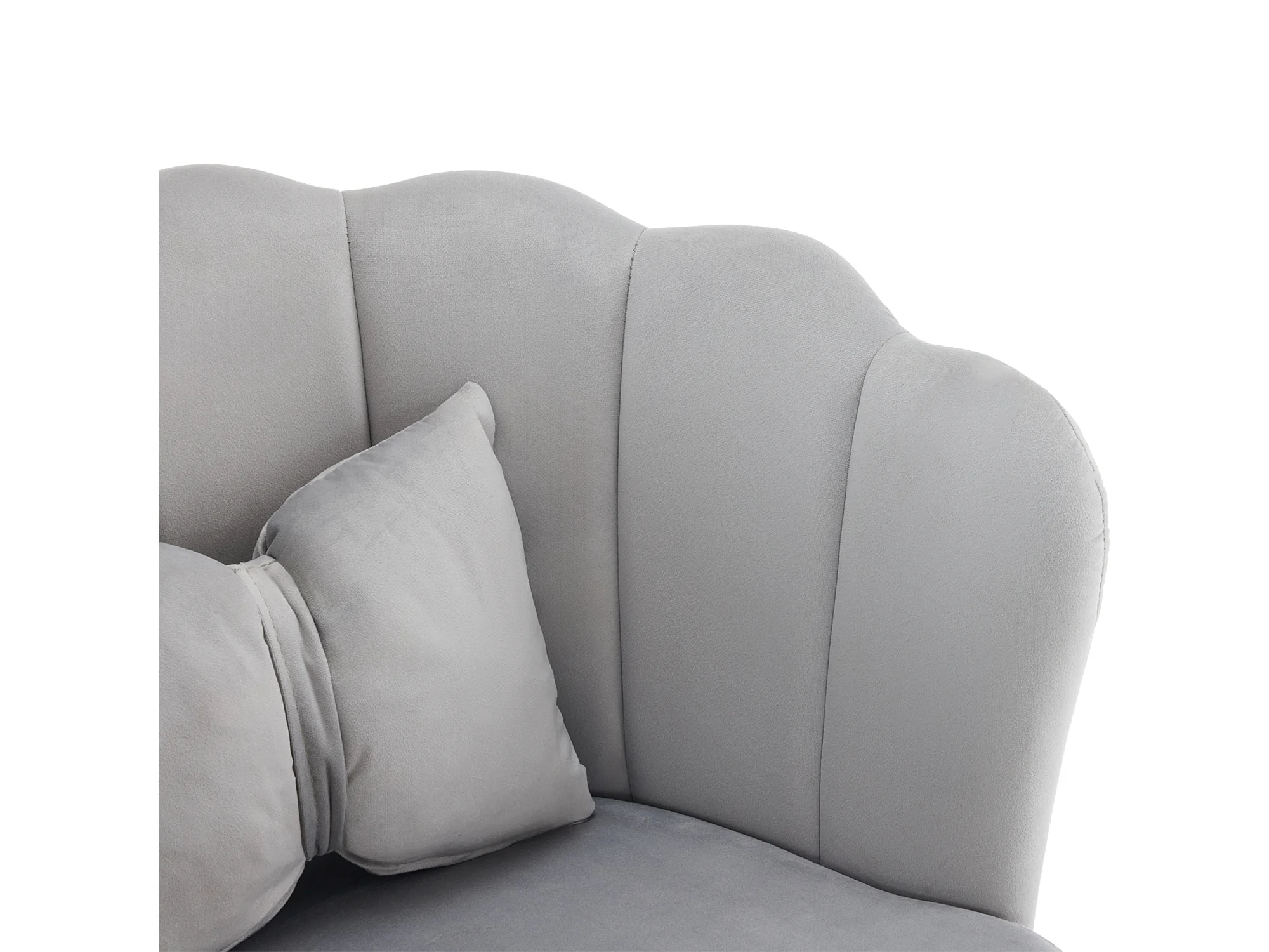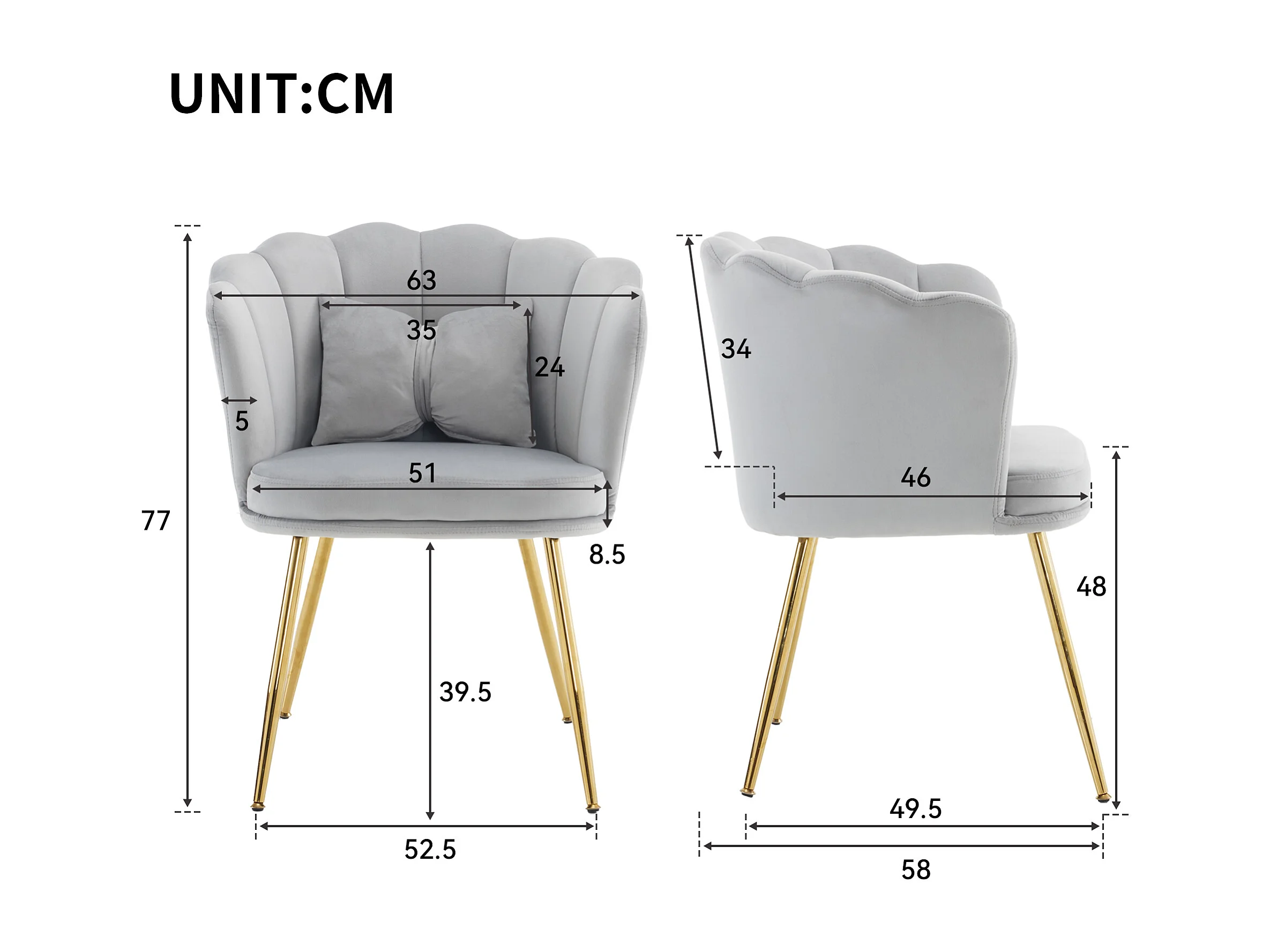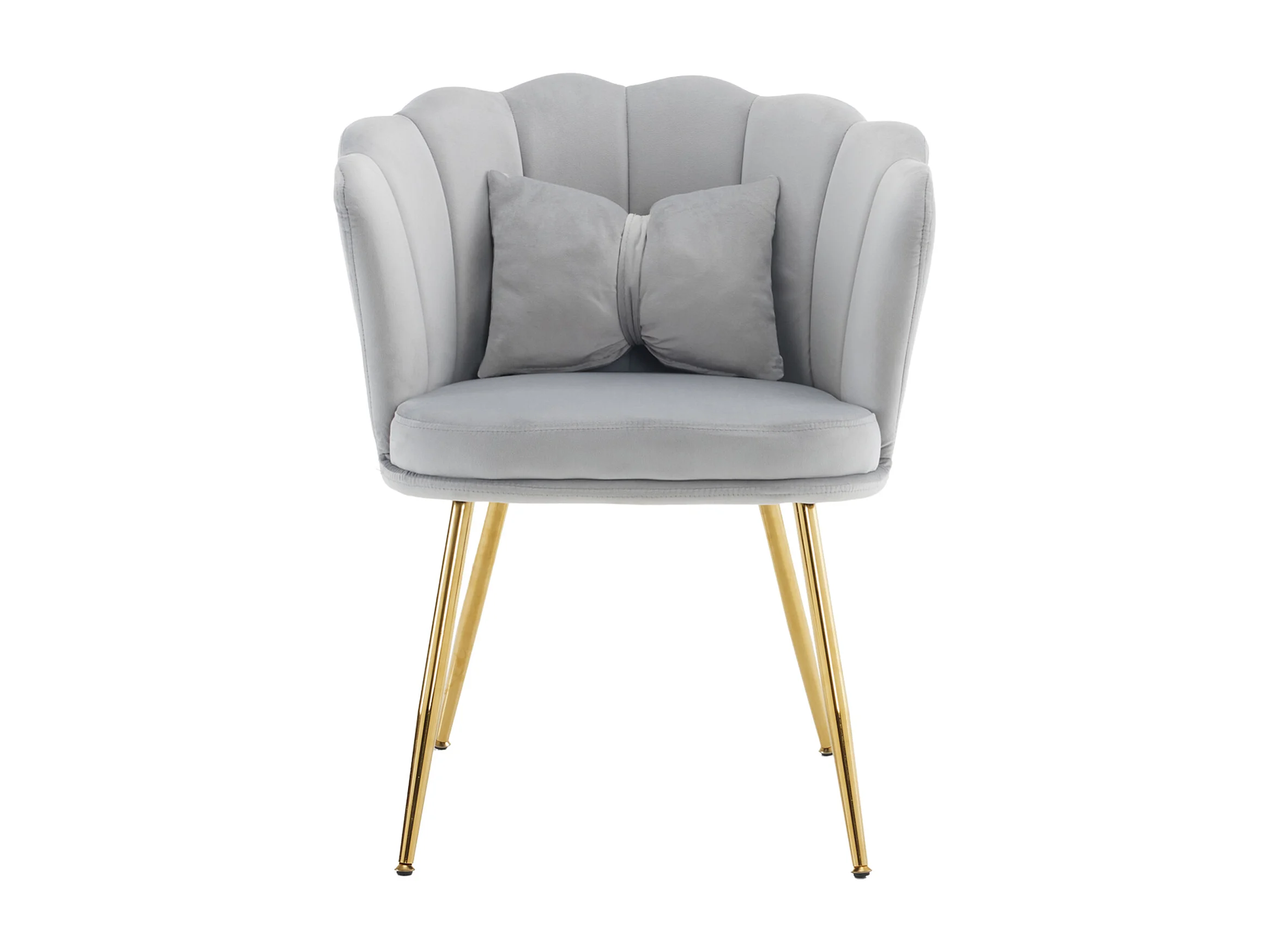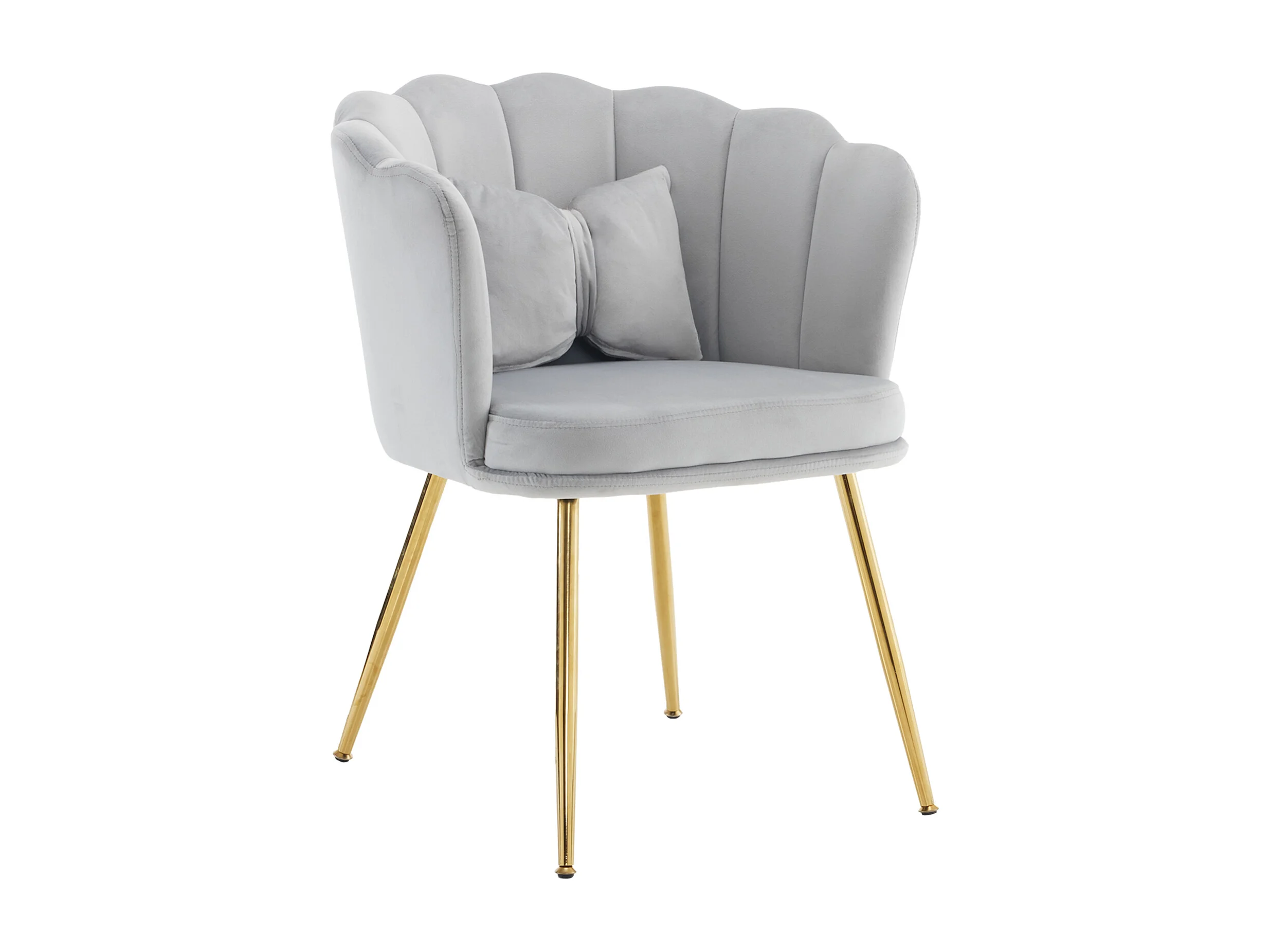 Chaise en velours avec soutien lombaire - Pieds en métal doré - Gris