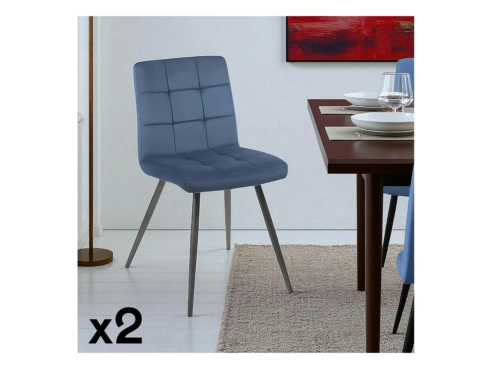 Chaise en velours capitonné bleu MALMOE (lot de 2)