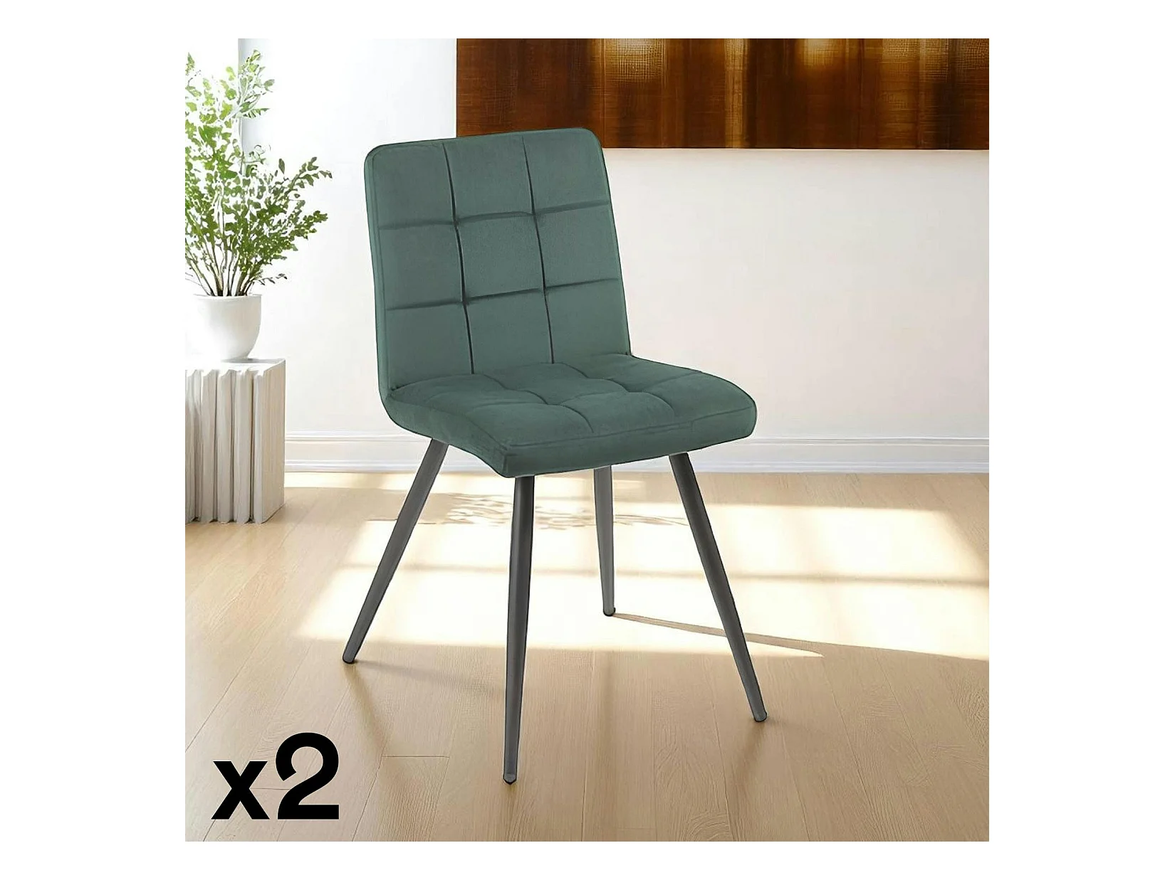 Chaise en velours capitonné vert MALMOE (lot de 2)