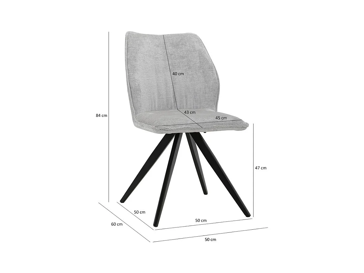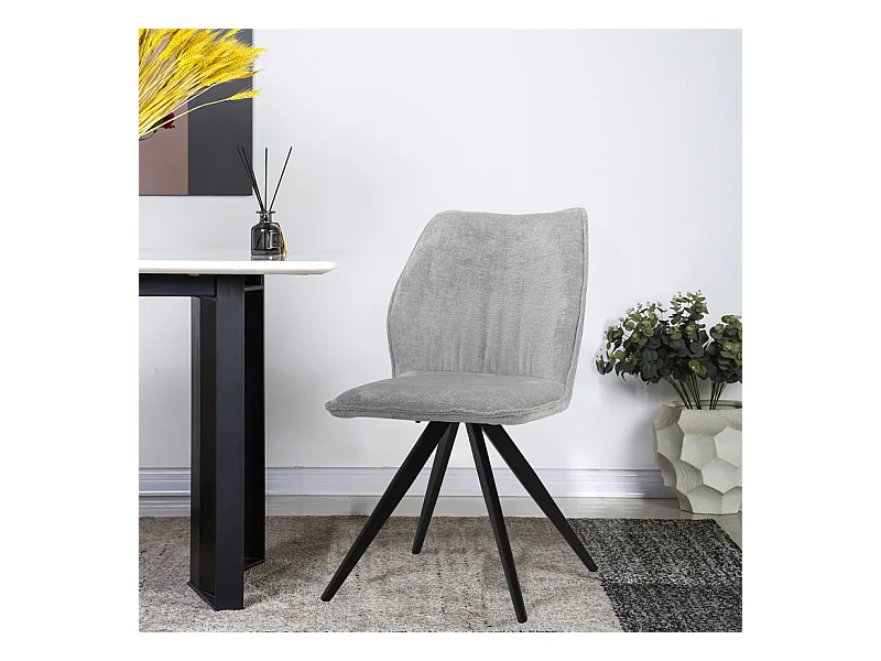 Chaise en velours doux gris et pied croix en métal noir - JAMES
