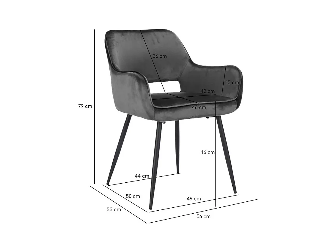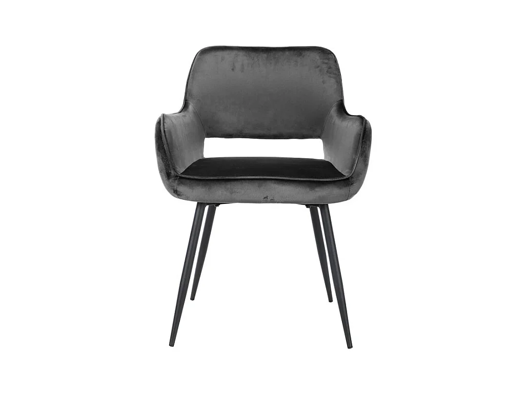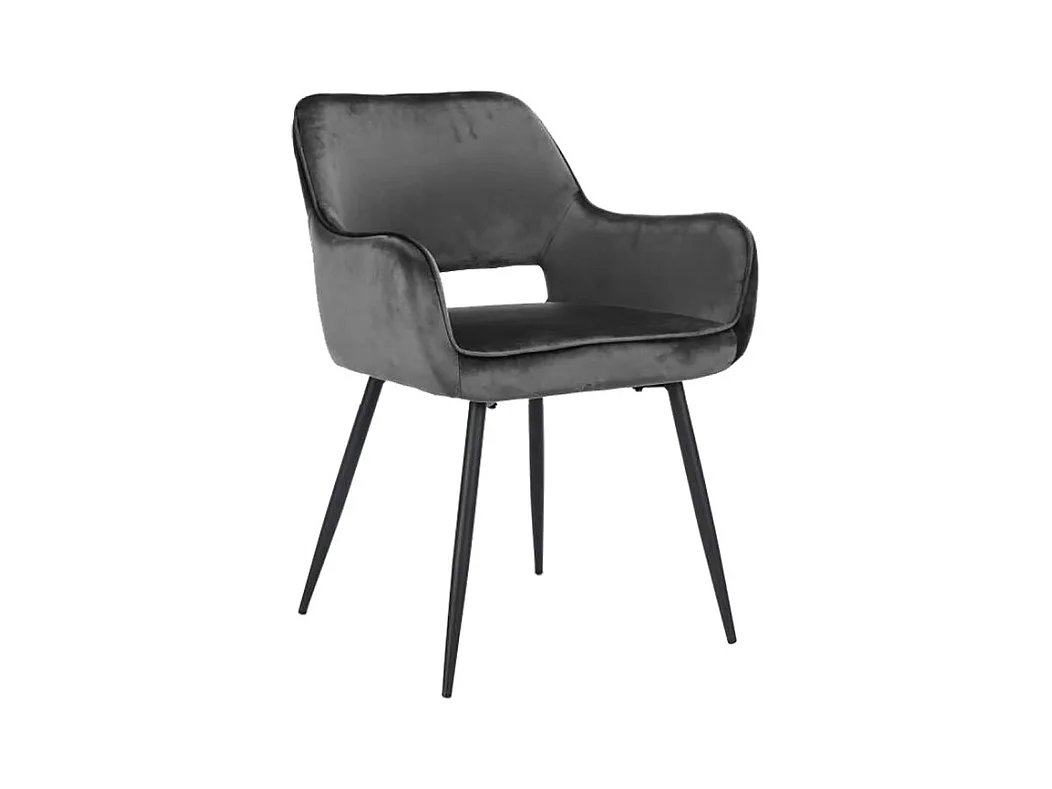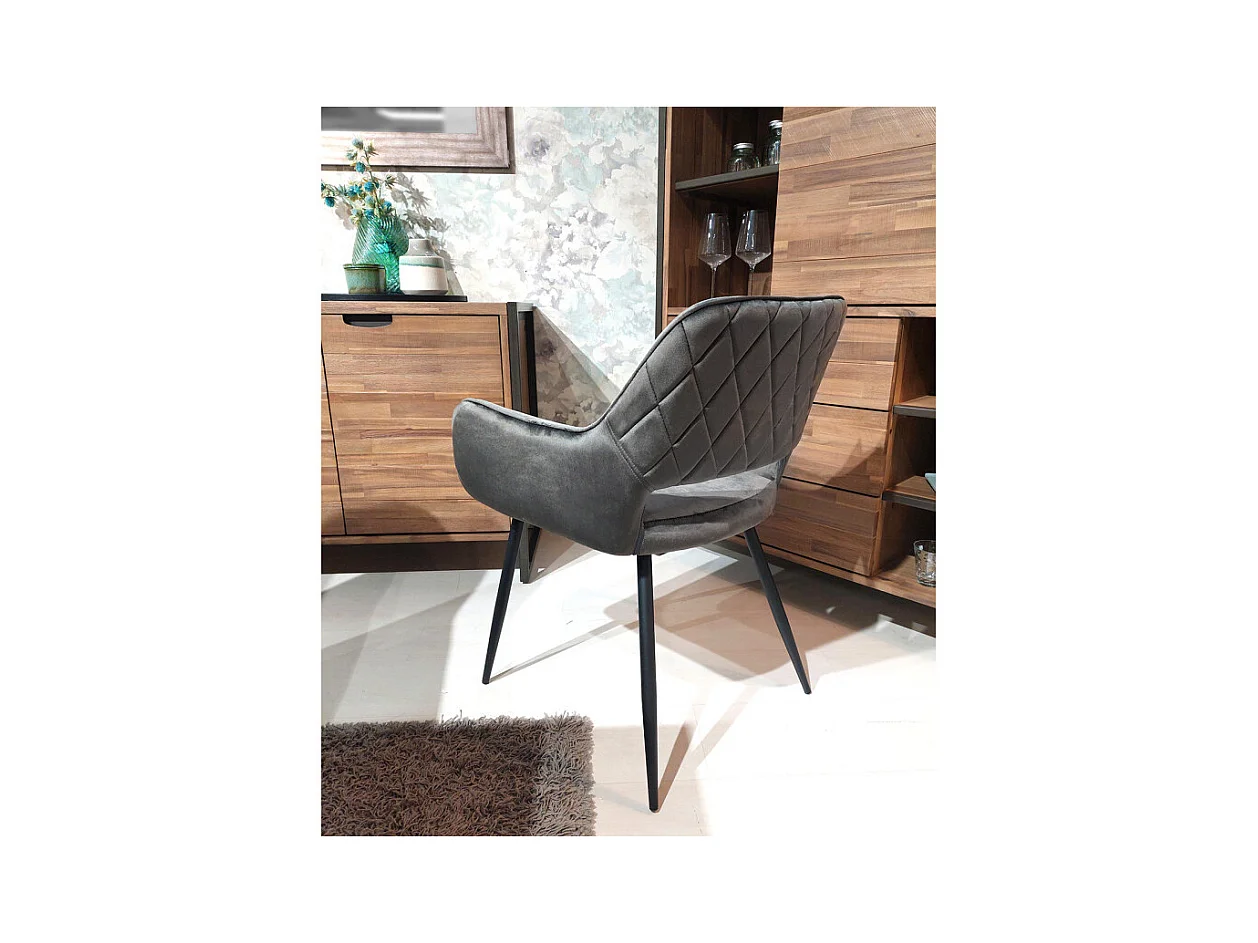 Chaise en velours gris anthracite avec dossier capitonné - ARON