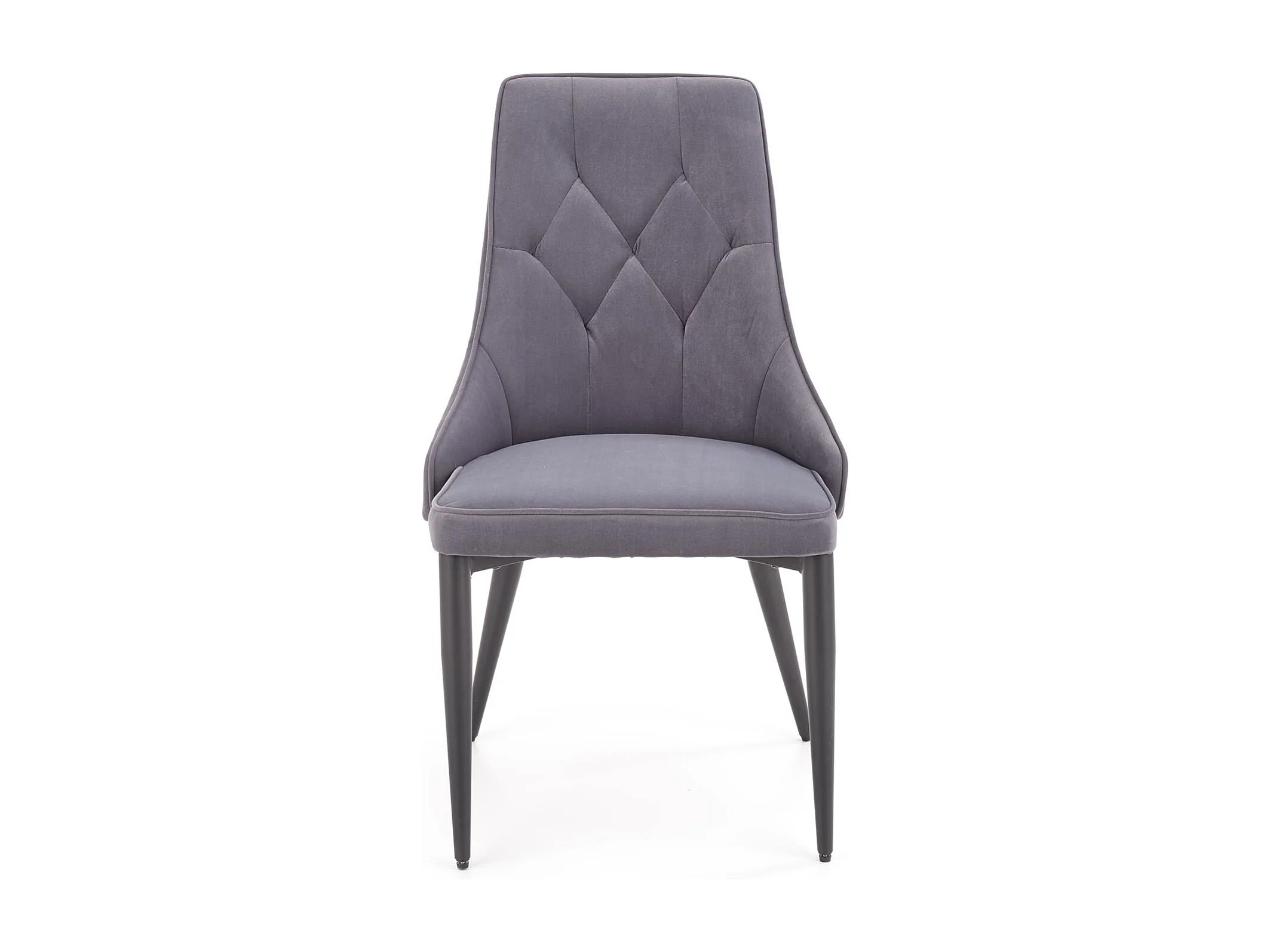Chaise en velours gris foncé avec dossier matelassé et pieds en acier noir COSMOS