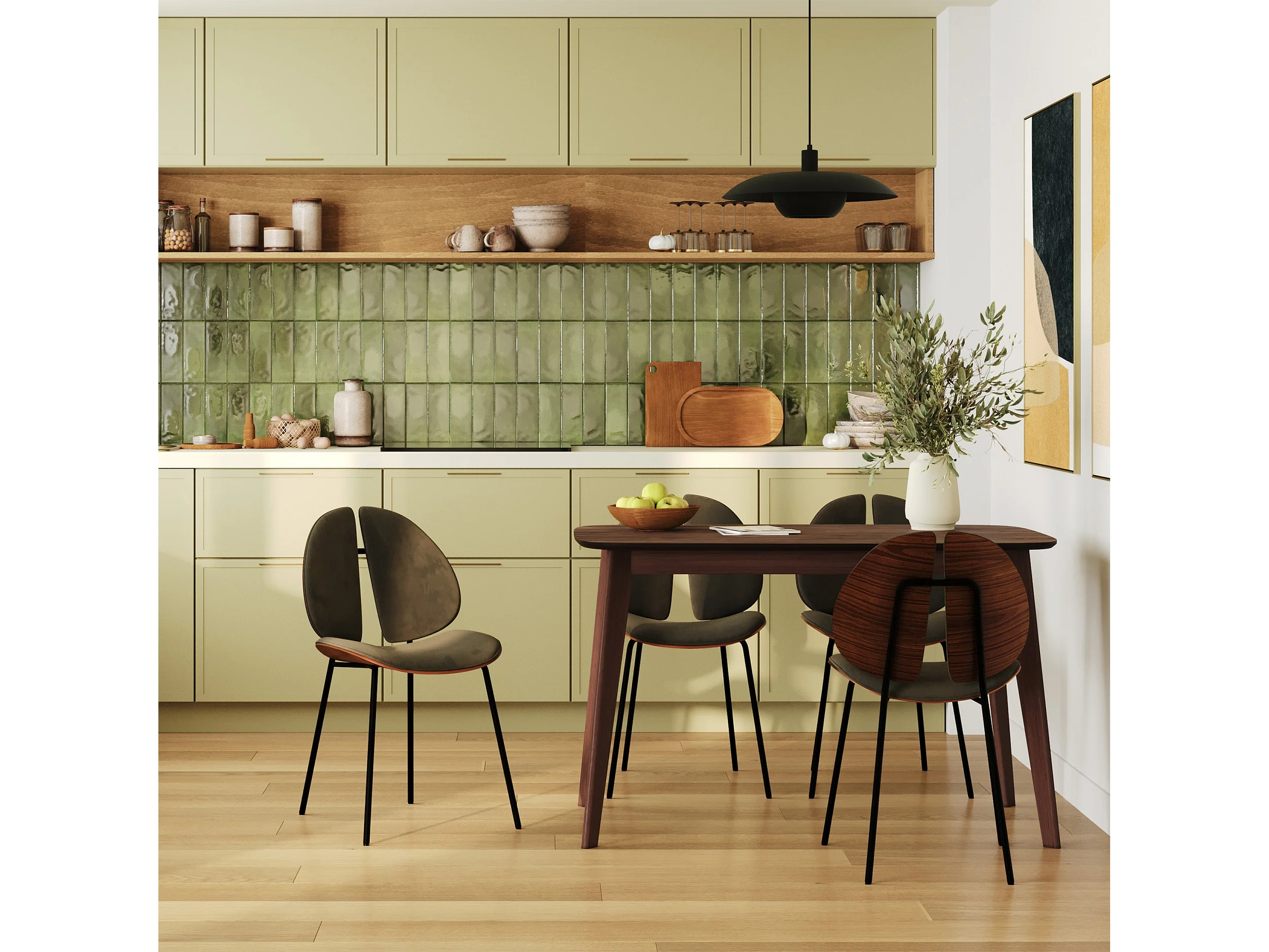 Chaise de Salle à Manger Rembourrée en Velours - Brugges Olive