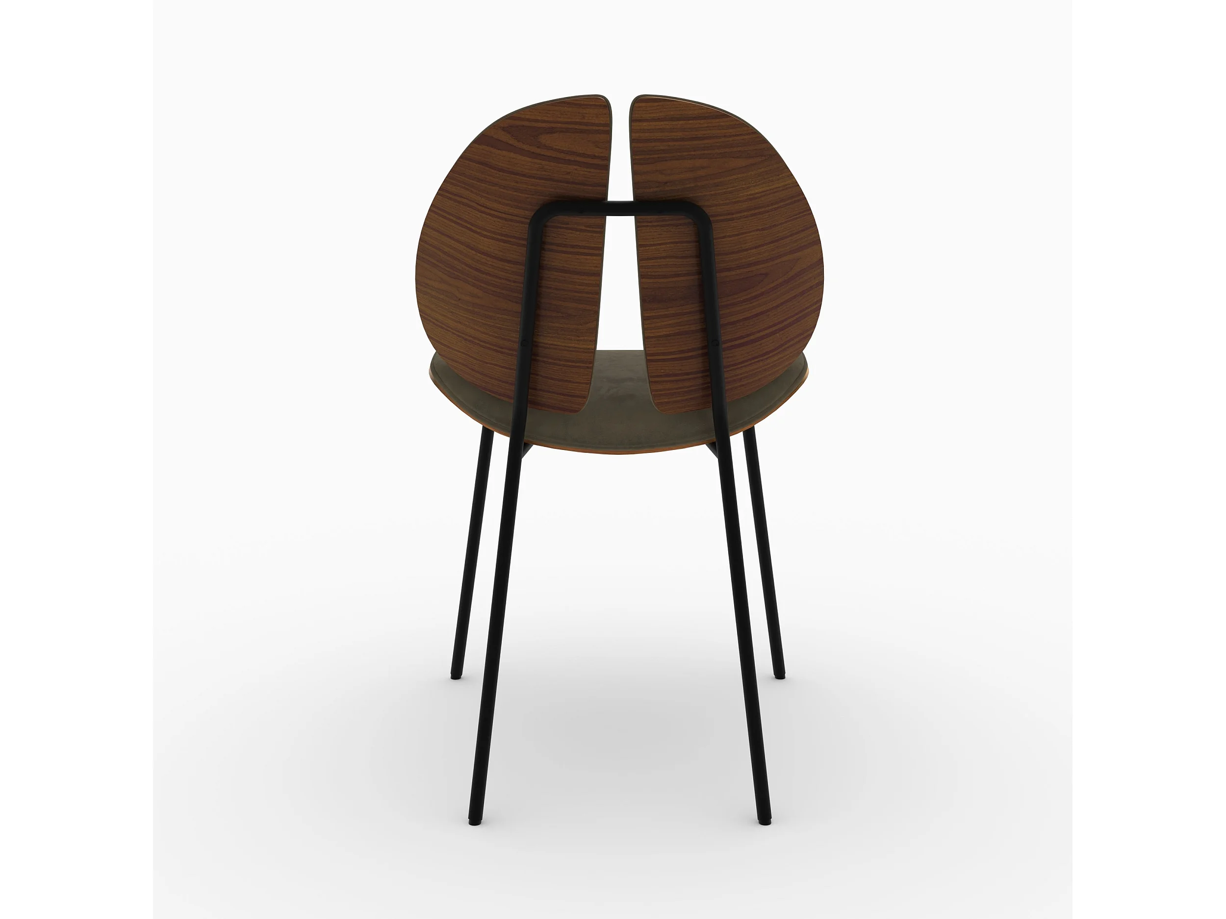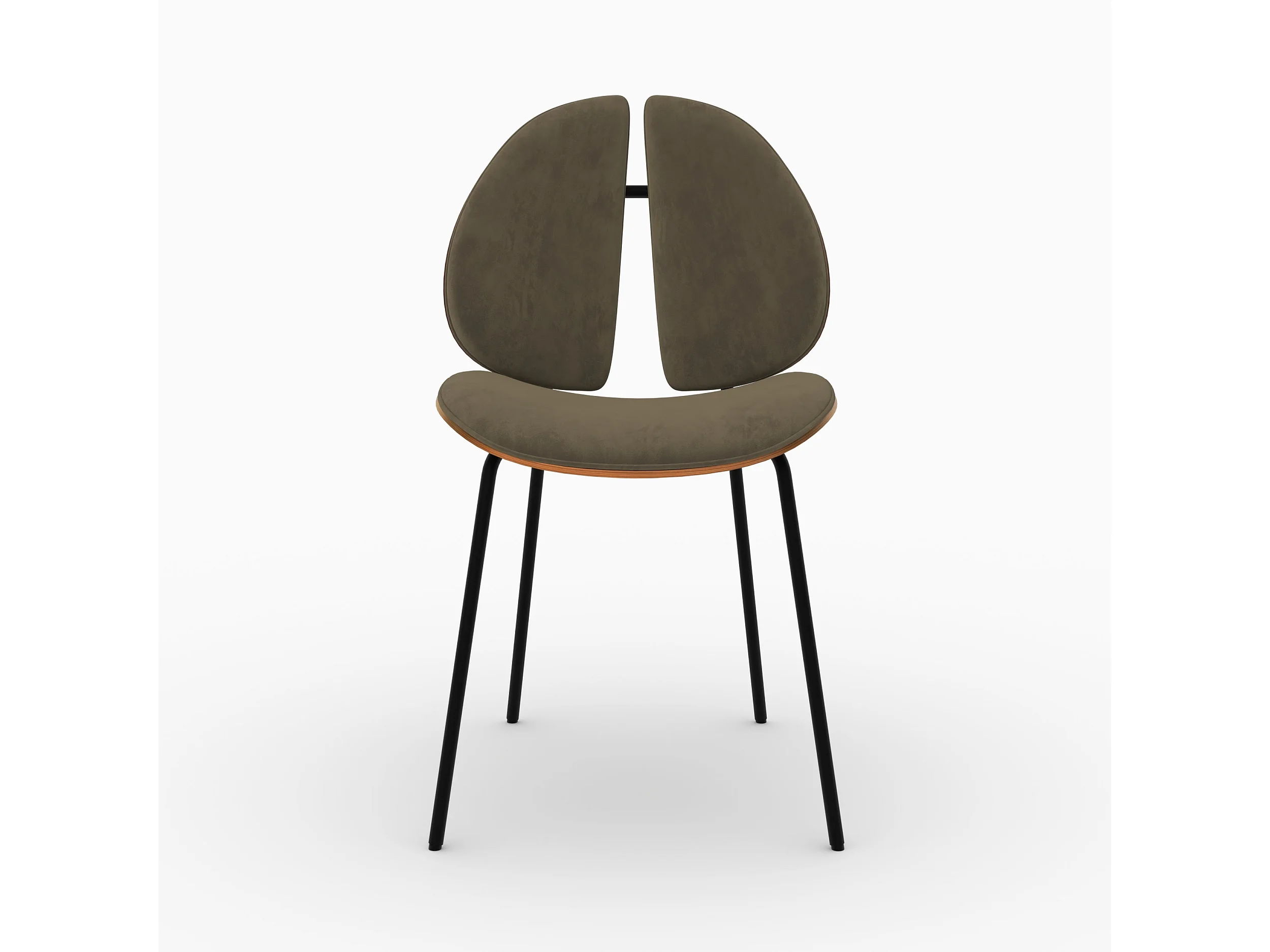 Chaise en velours kaki et bois de noyer - Coccinelle