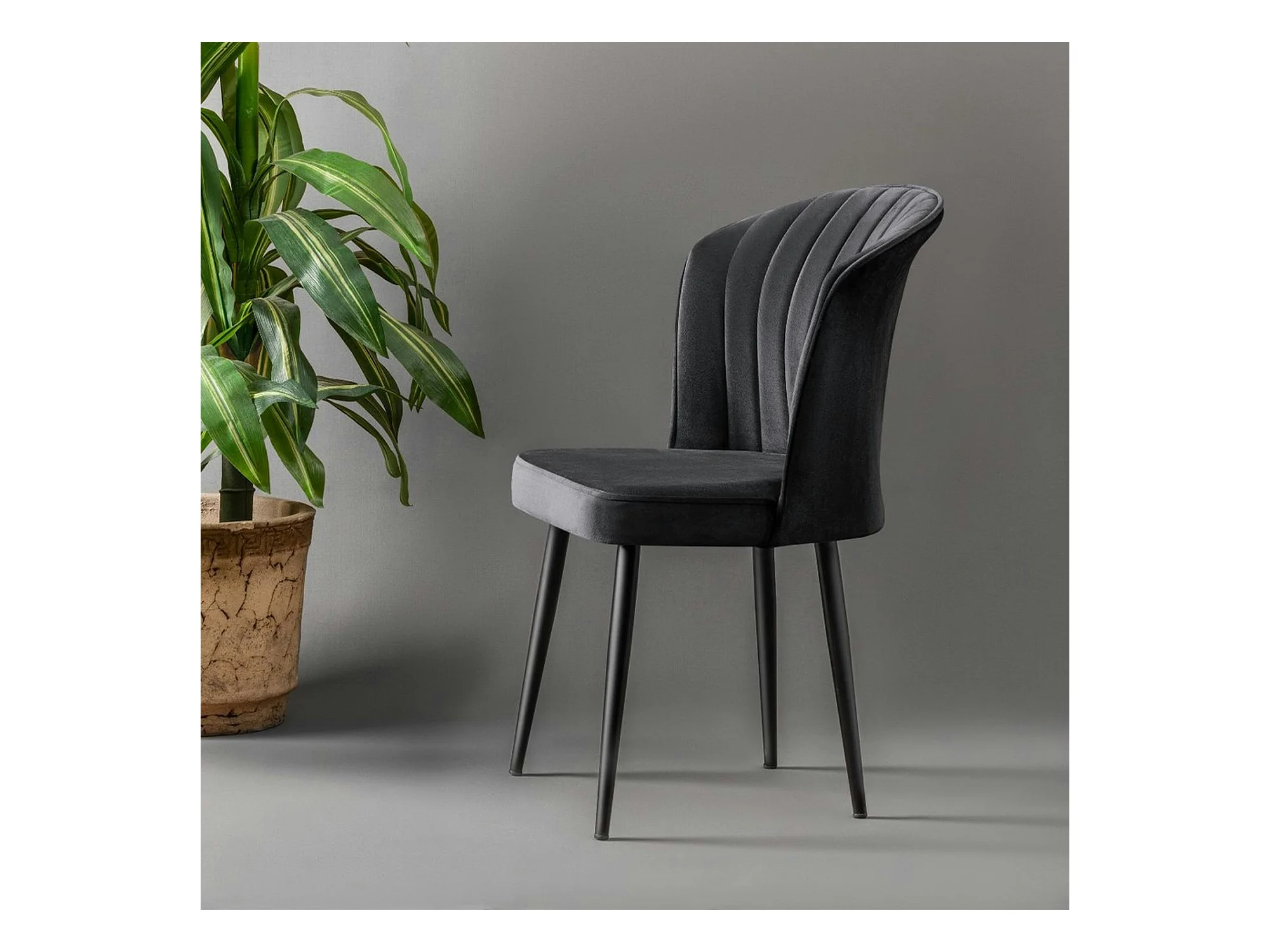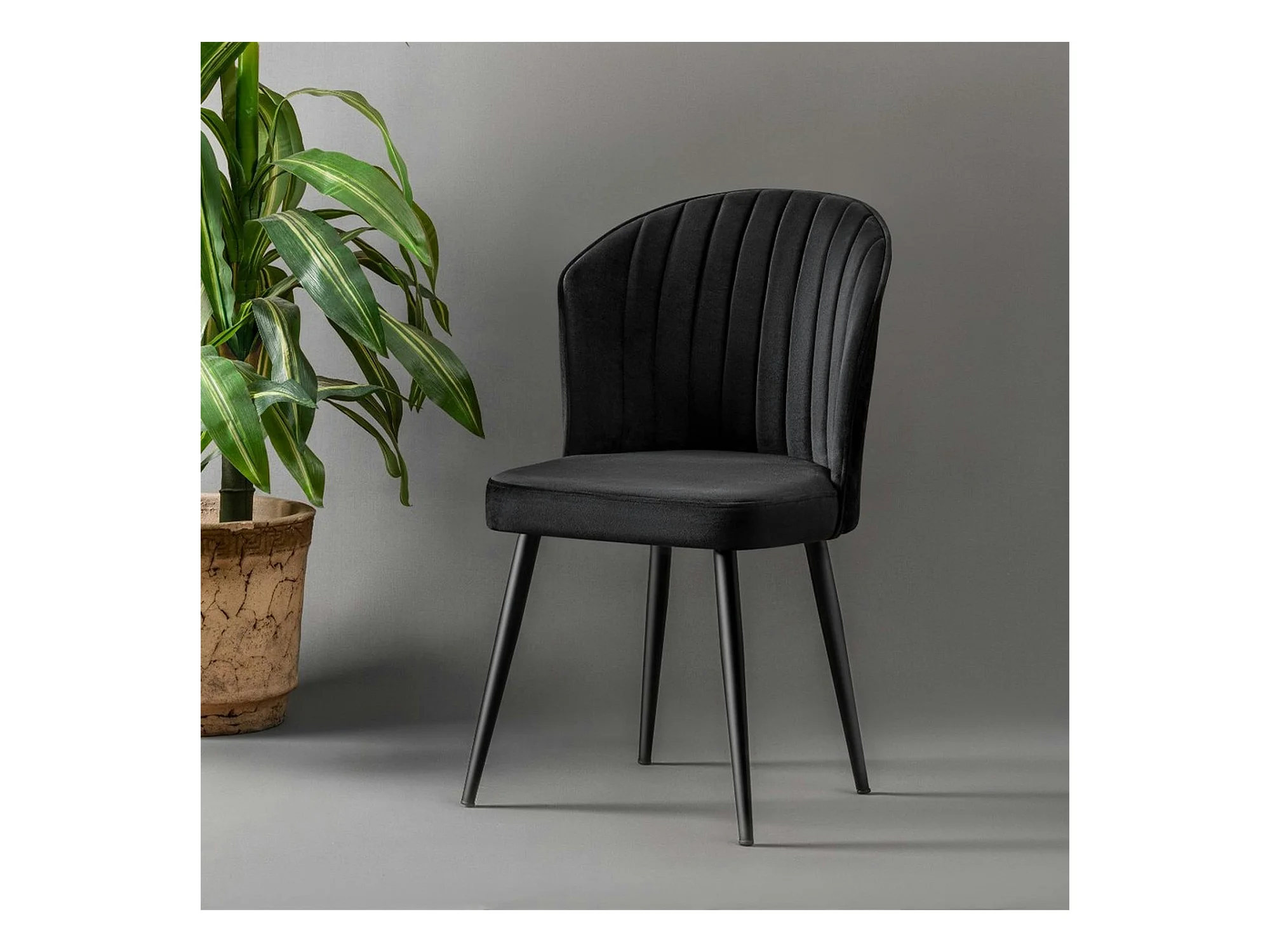 Chaise en velours noir - dossier enveloppant ROSARIO (Lot de 2)