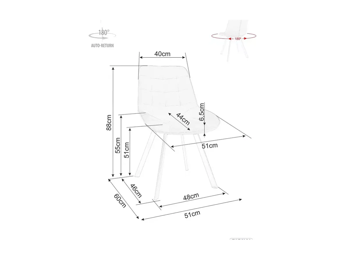 Chaise pivotante velours noir avec retour automatique et ressorts ensachés SALISZ