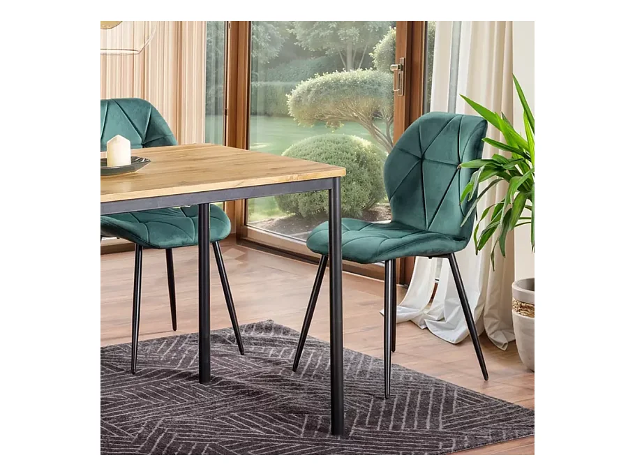 Chaise en velours vert avec structure métal noir mat et design géométrique élégant LIRYCA