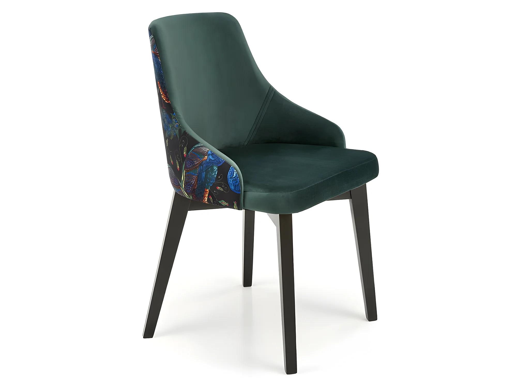 Chaise en velours vert foncé avec dossier multicolore Andrea