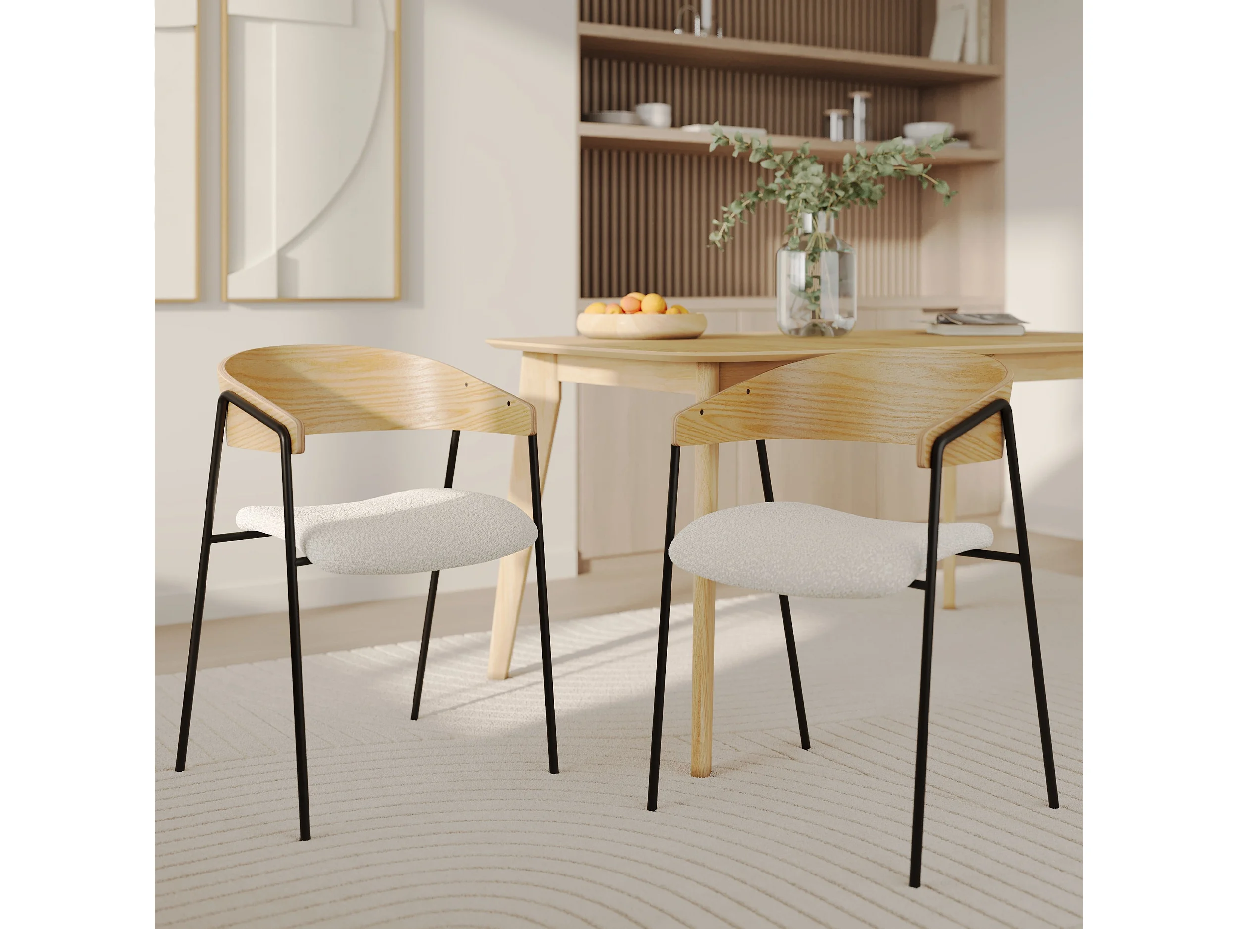 Lot de 2 chaises en tissu bouclé blanc et bois de chêne - Esmée