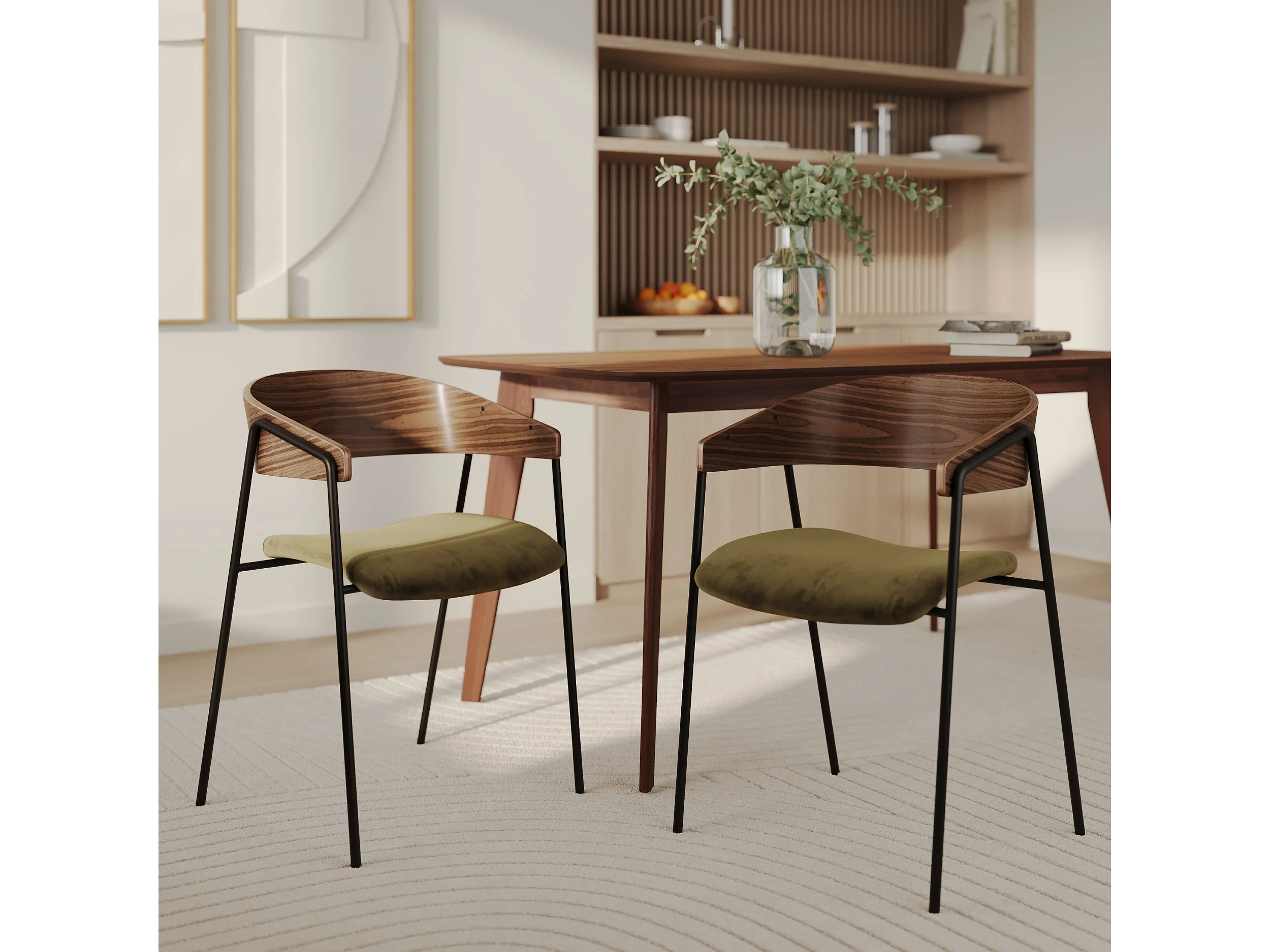 Lot de 2 chaises en velours vert kaki et bois de noyer - Esmée