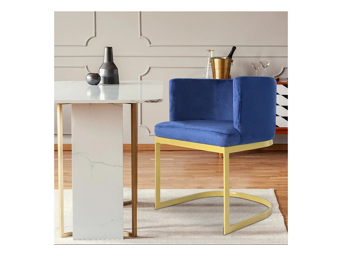 Chaise Design en Velours "Noemy" 75cm Bleu