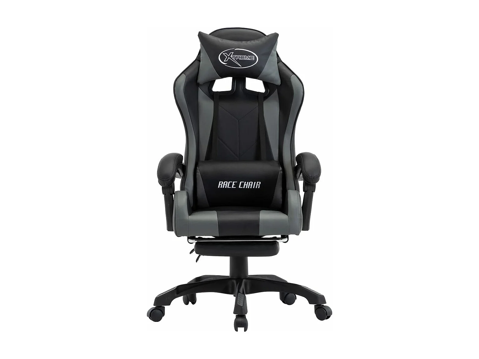 Chaise gamer avec repose-pied Gris et noir Similicuir REO35220