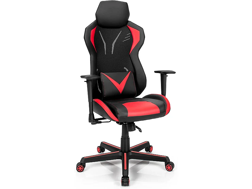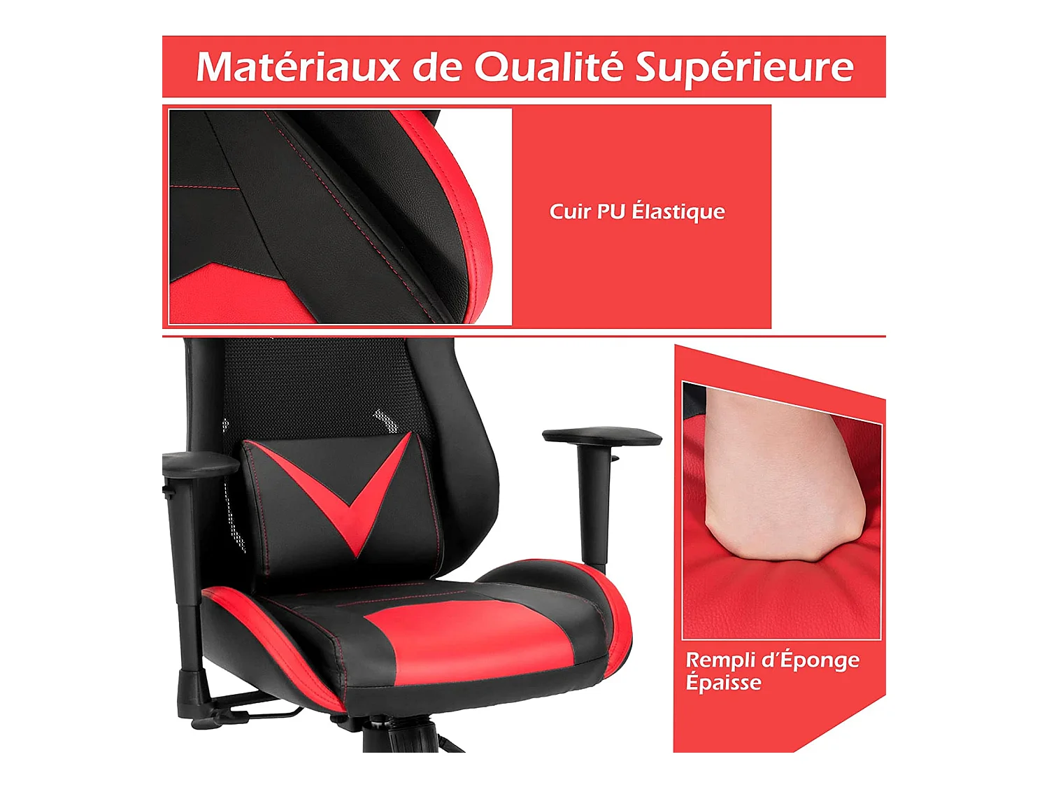 Chaise de Bureau/Chaise Gaming Ergonomique à Roulettes Pivotante avec Support de Colonne Vertébrale 3D Rouge et Noir