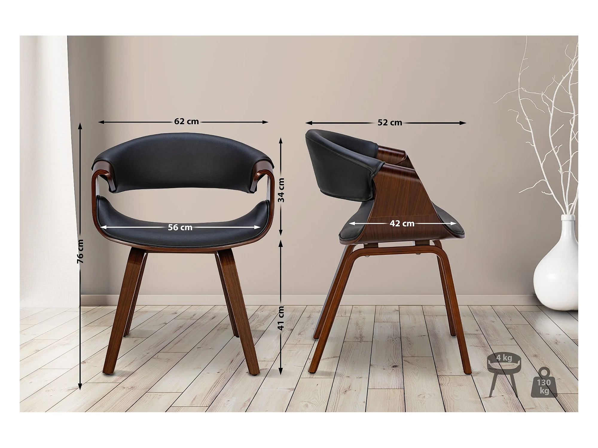 chaise salle à manger - Similicuir - Noyer / Noir - Vangale