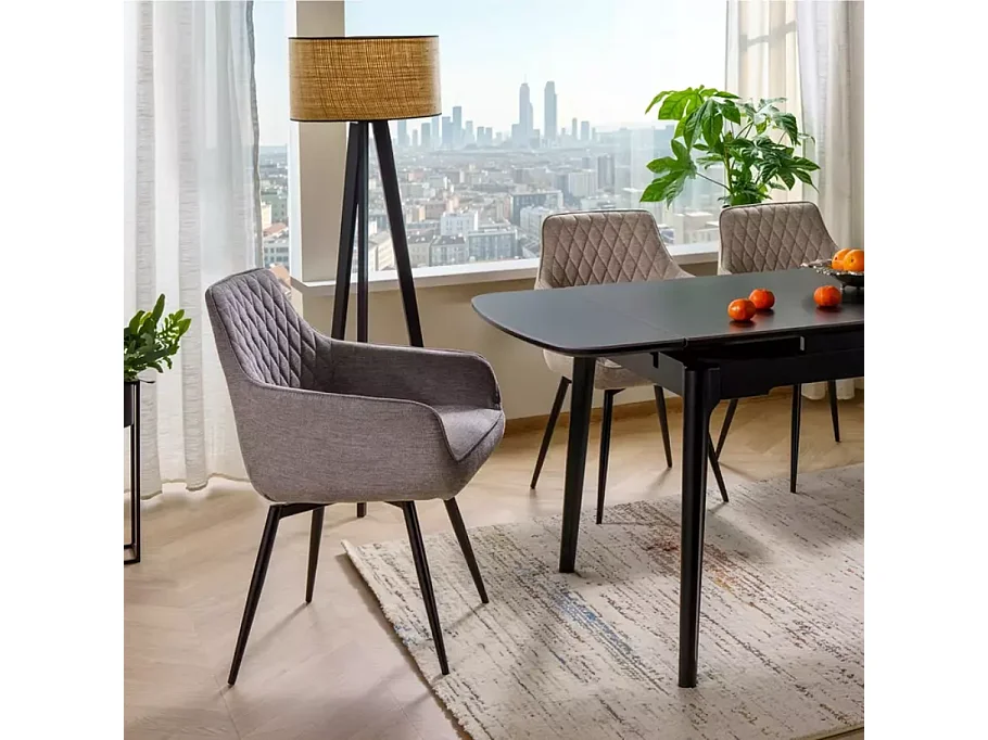 Chaise grise tissu pivotante avec retour automatique et ressorts LOTINDA