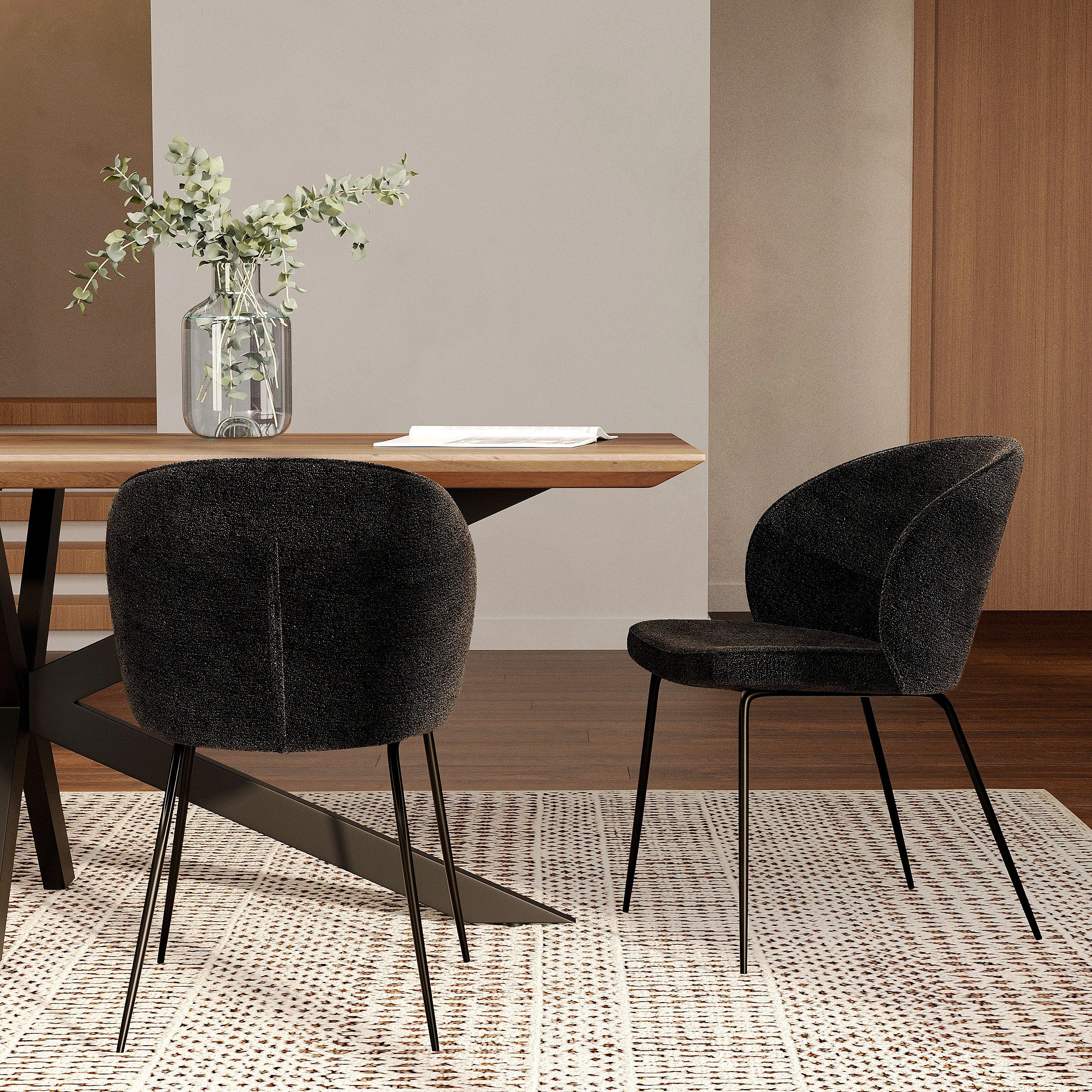 Lot de 2 chaises en tissu bouclé noir et pieds en métal - Groom