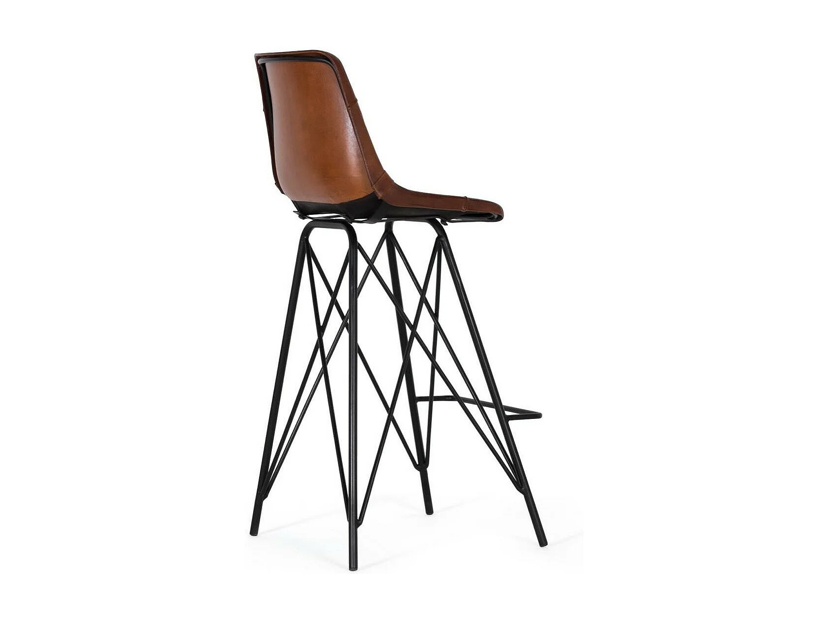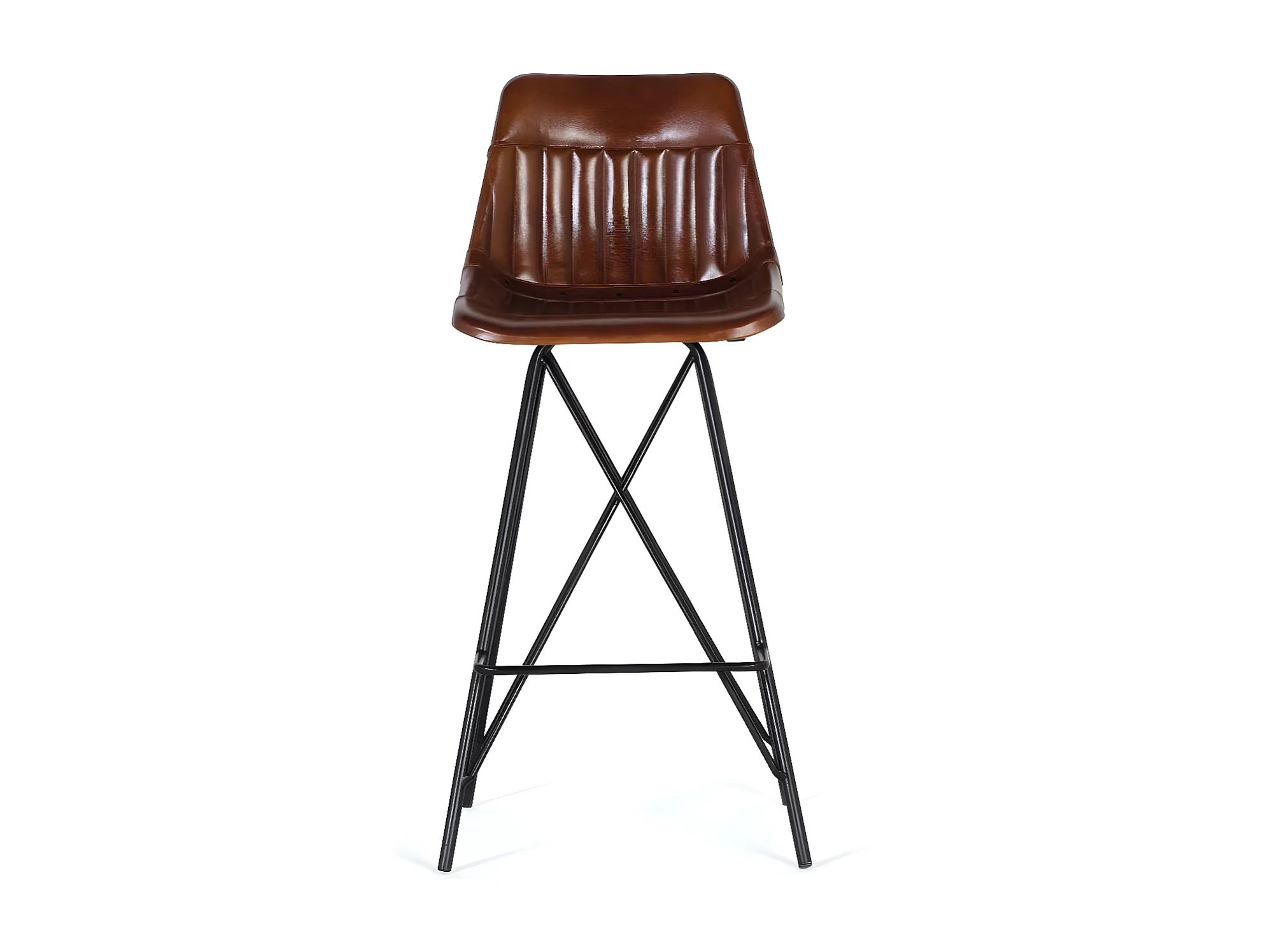 Chaise Haute Fer, Cuir Marron 48x48x100cm Fer-Cuir de Vache - Décoration d'Autrefois