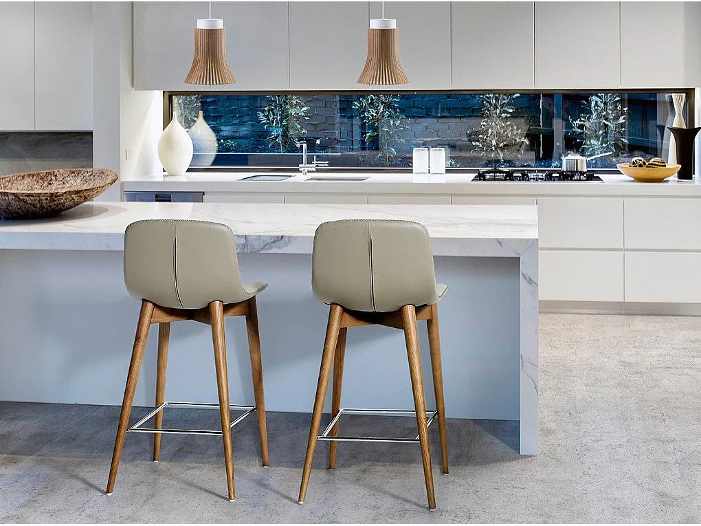 Chaise haute similicuir et pieds bois frêne massif Pandora - lot de 2-Couleur Aqua 23 Chocolat