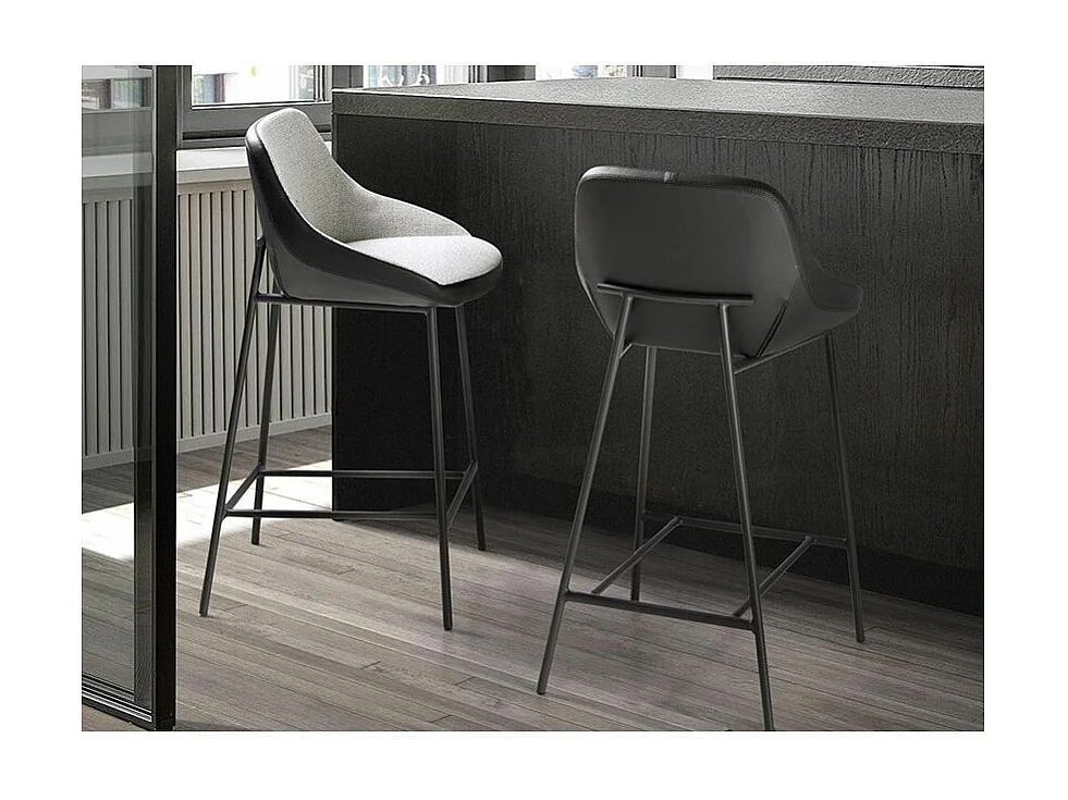 Chaise haute tissu et cuir éco et pieds acier Pino - Lot de 2-Couleur Aqua 71 Gris clair
