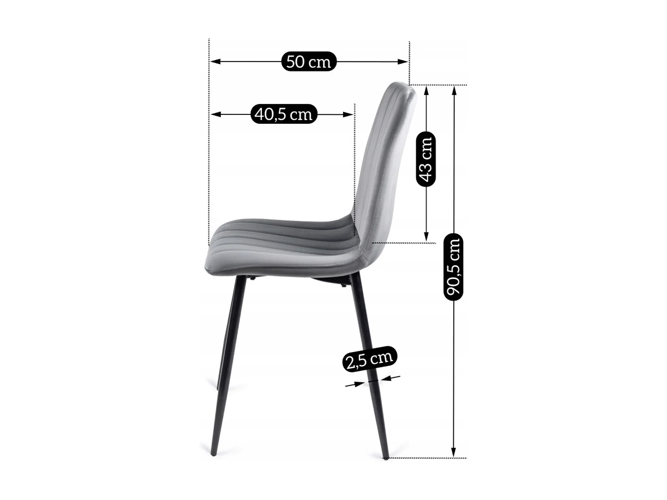 Chaise en velours matelassée LIVO Graphite Foncé pieds noirs