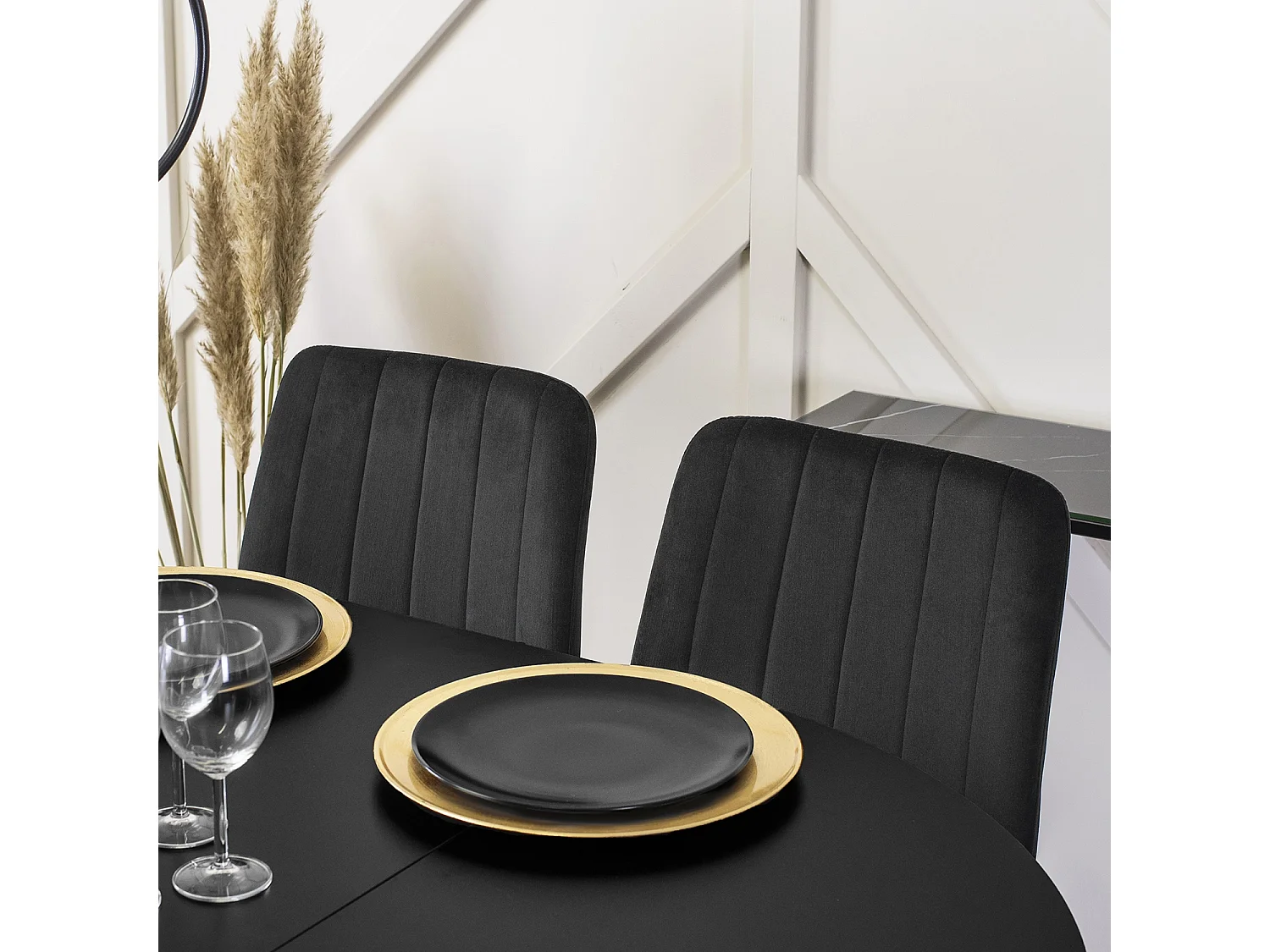 Chaise en velours matelassée LIVO Noire pieds noirs