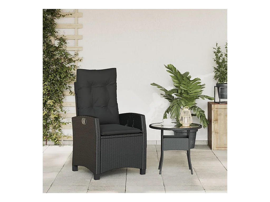 Chaise inclinable de jardin avec coussins noir résine tressée