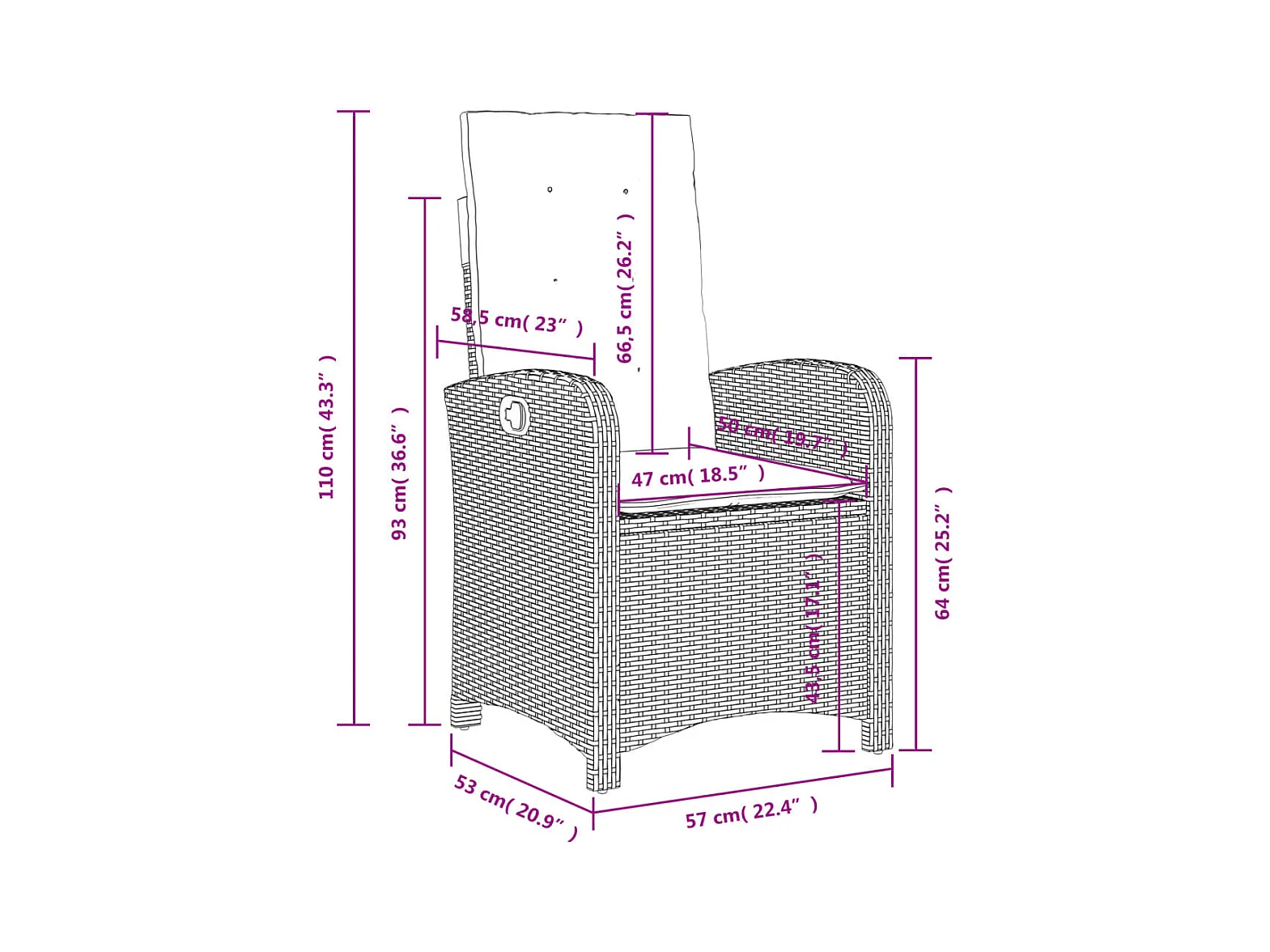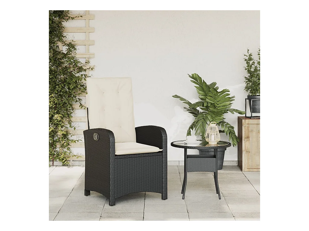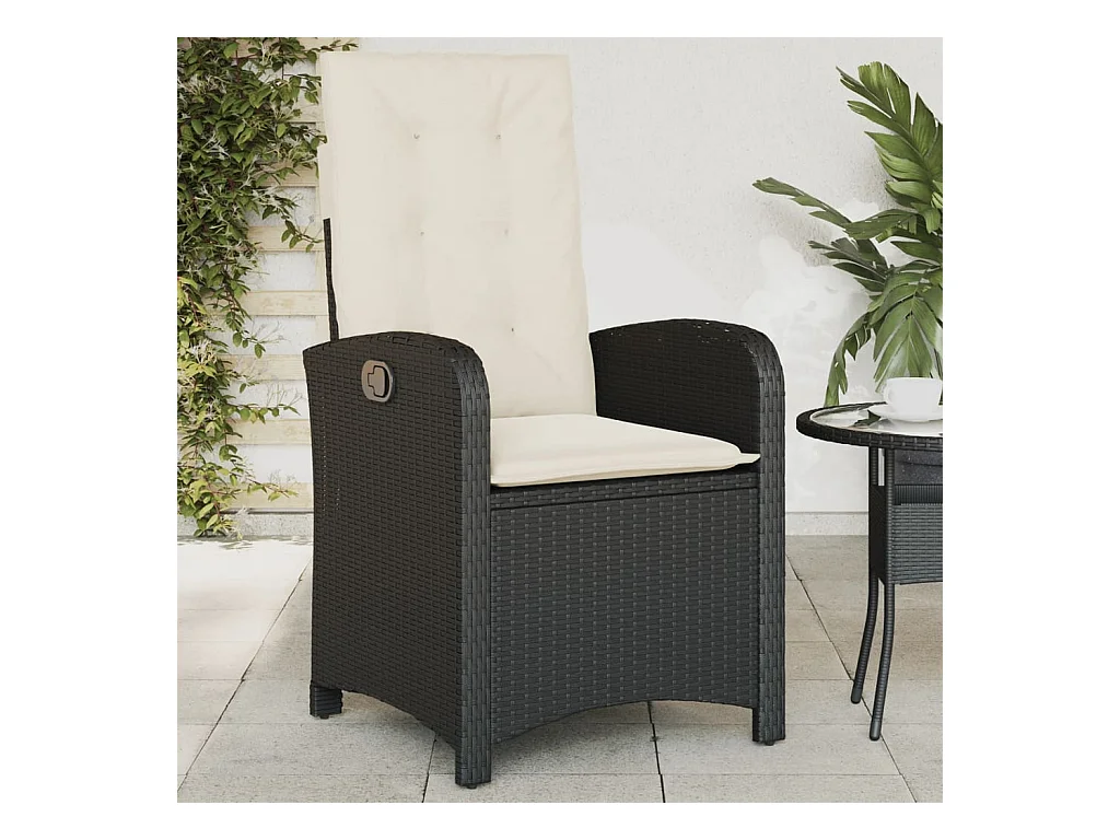 Chaise inclinable de jardin avec coussins noir résine tressée