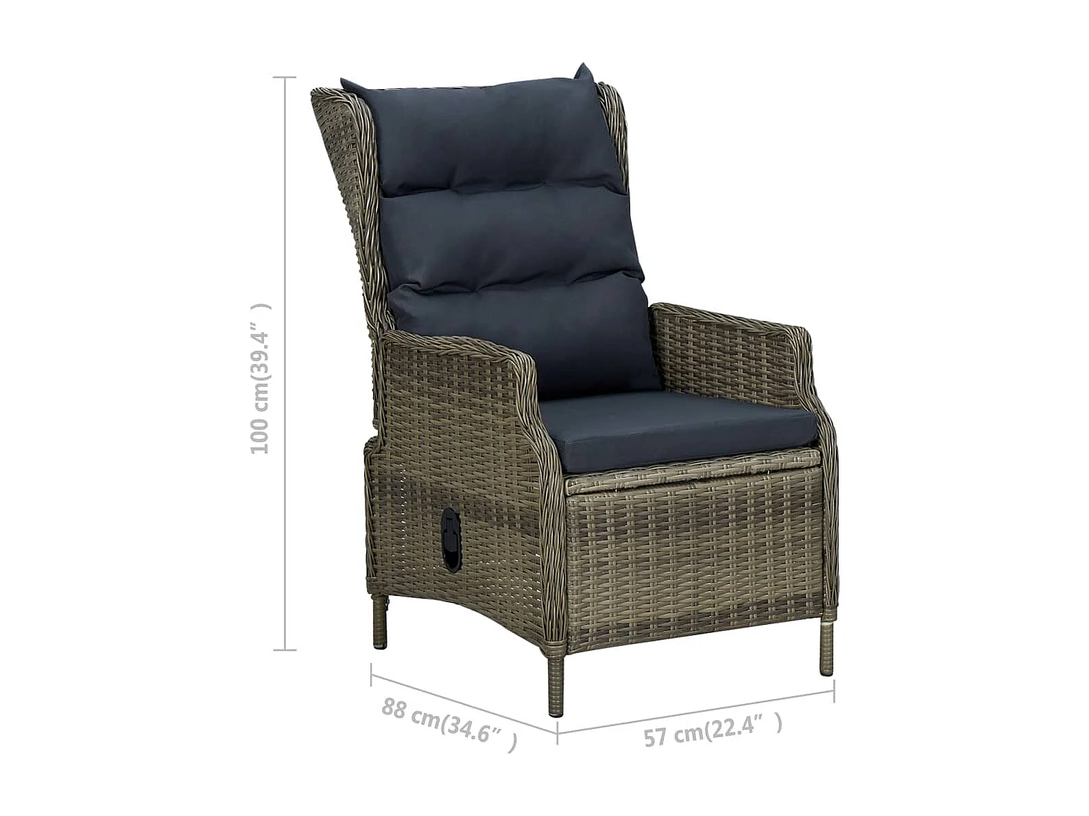 Chaise inclinable de jardin avec coussins Résine tressée Marron 2
