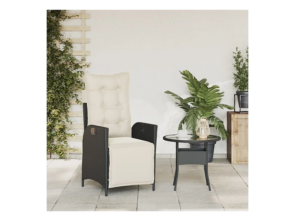 Chaise inclinable de jardin et repose-pied noir résine tressée