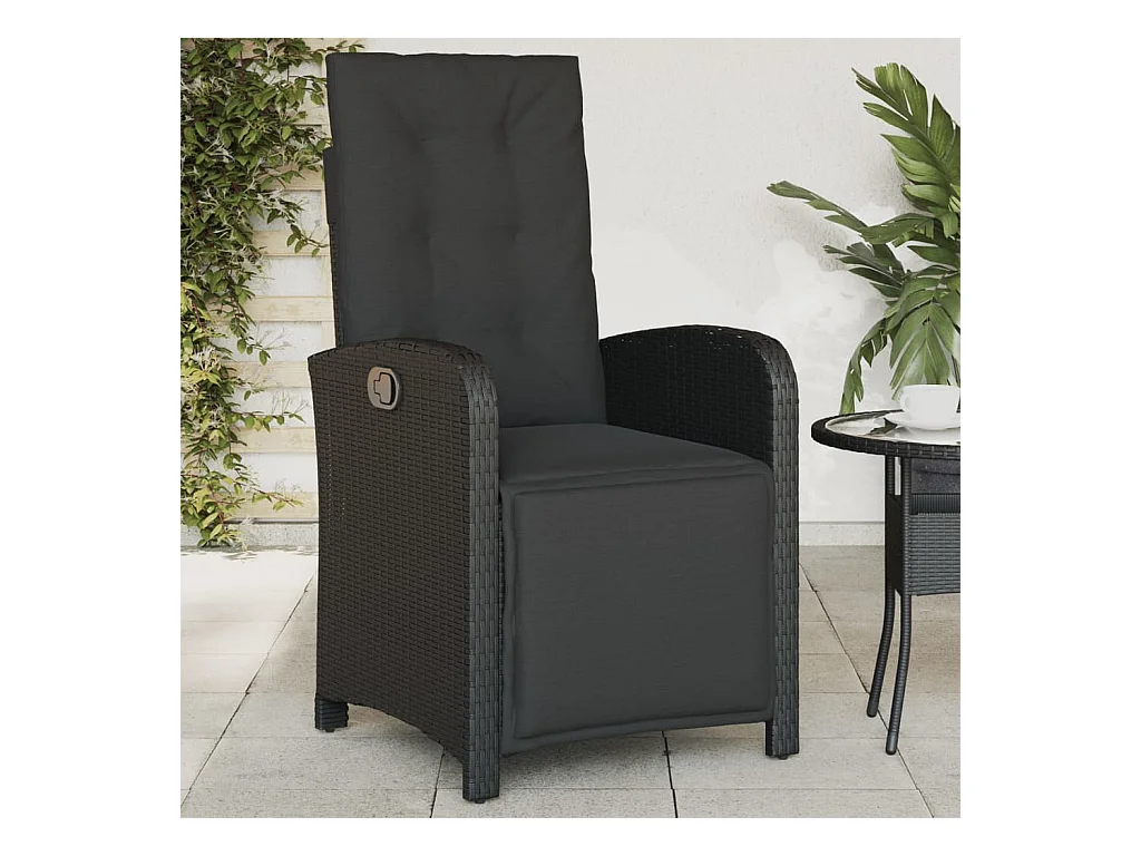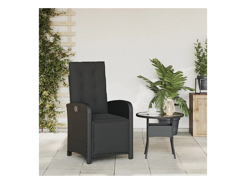 Chaise inclinable de jardin et repose-pied noir résine tressée