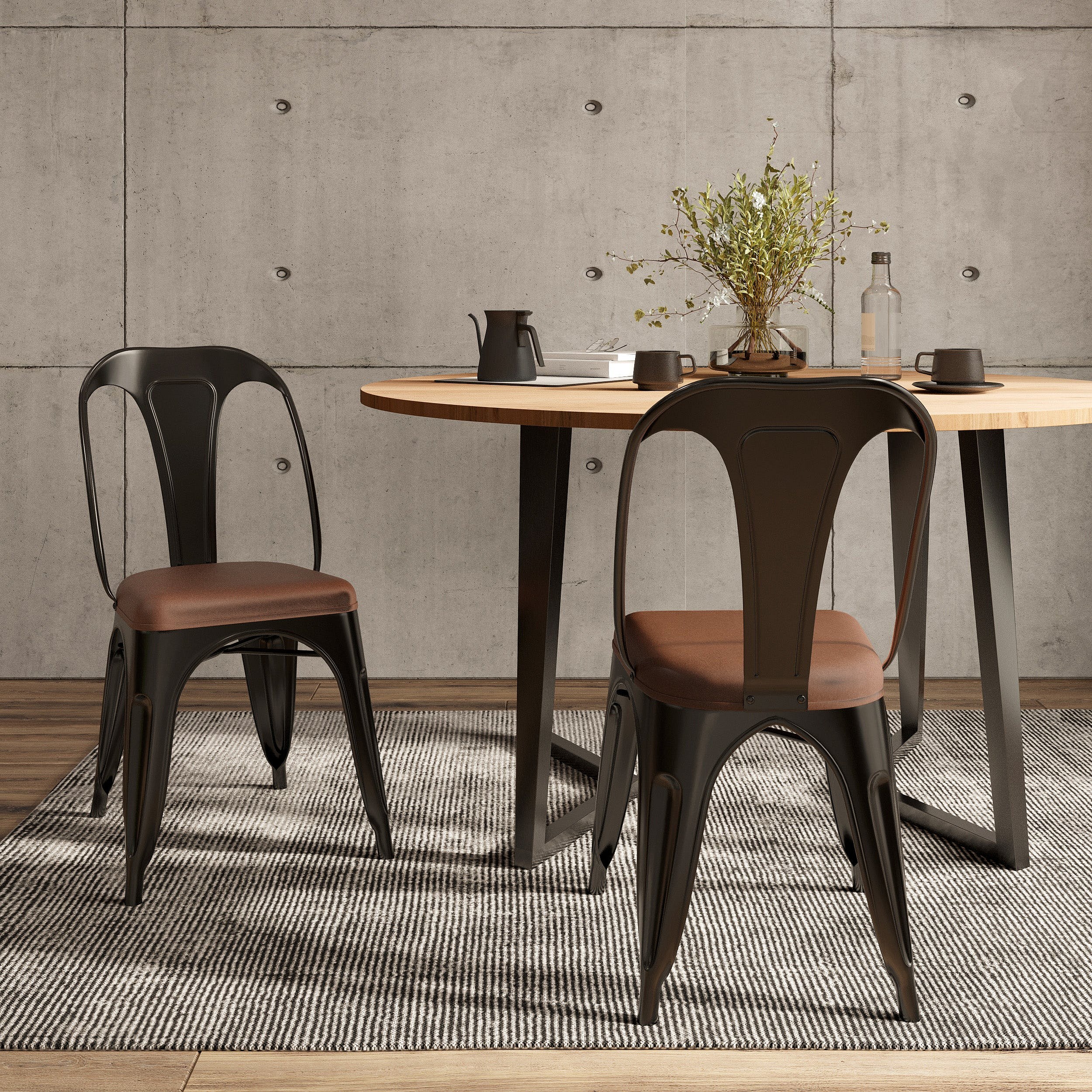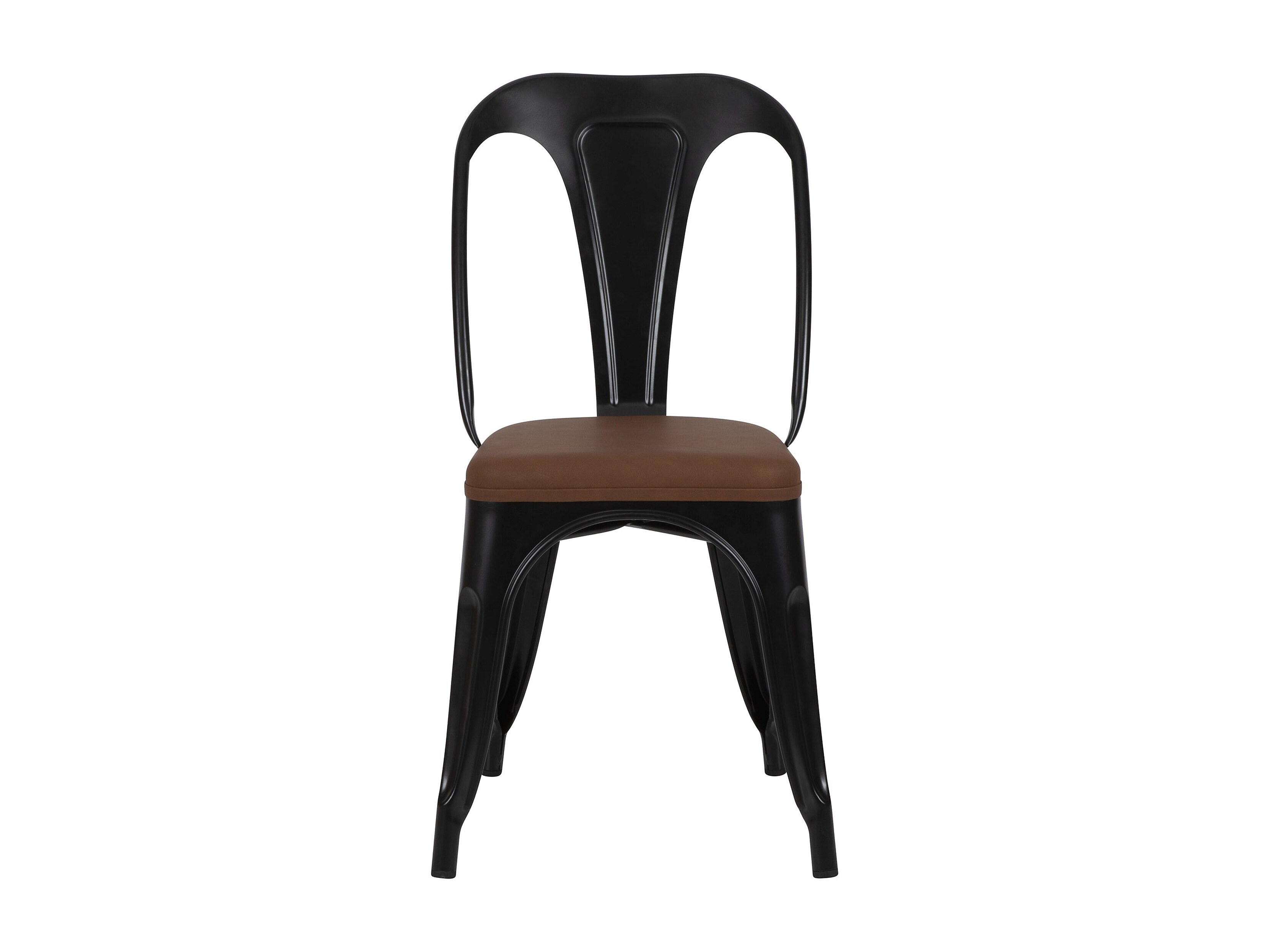 Lot de 2 chaises en métal noir et cuir synthétique marron - Charly