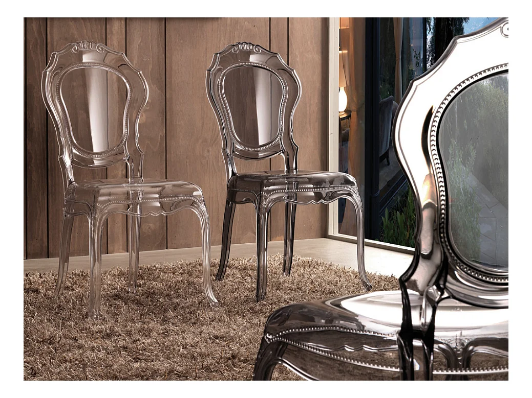 Chaise inspiration Louis XV design transparent Modina - Lot de 2-Couleur Transparent