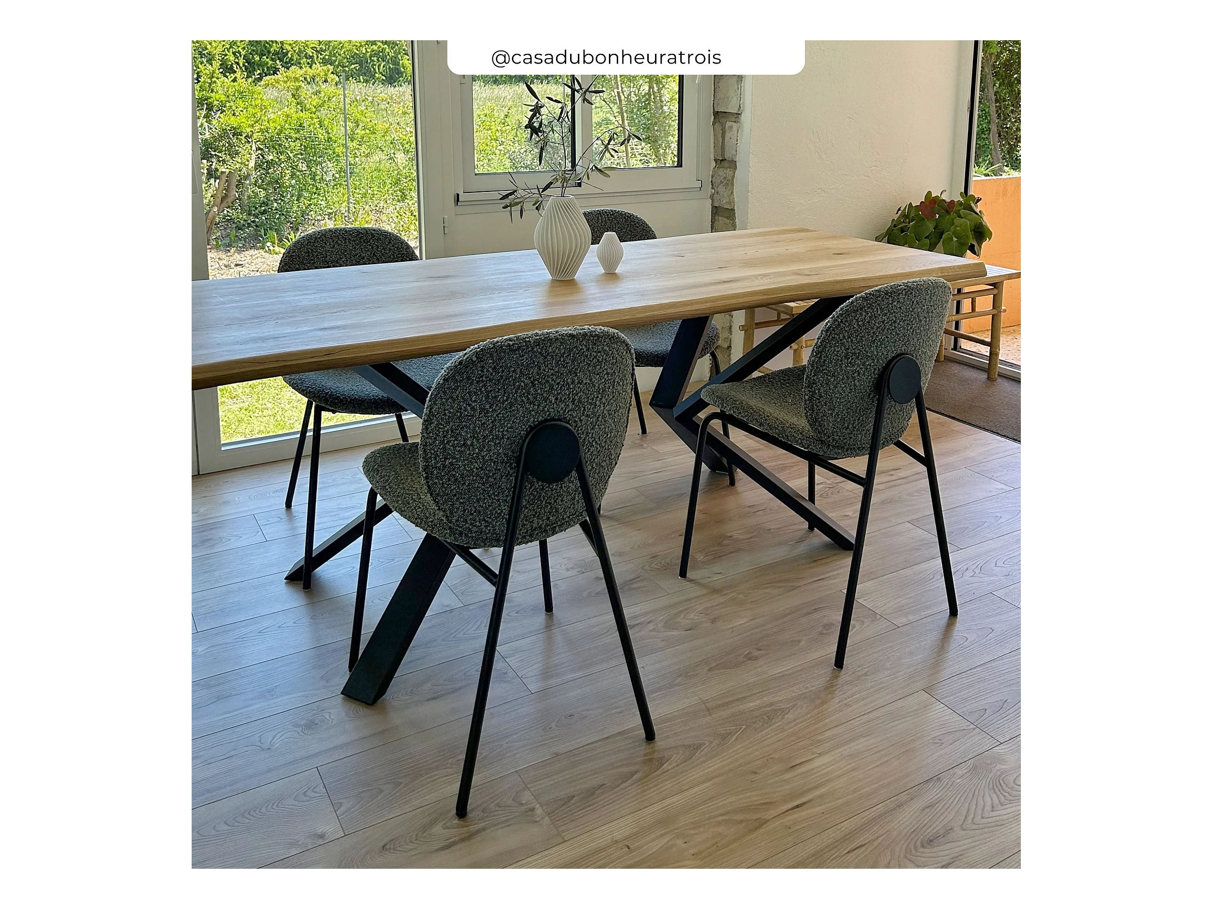 Lot de 2 chaises en tissu bouclé vert et pieds en métal noir - Iris