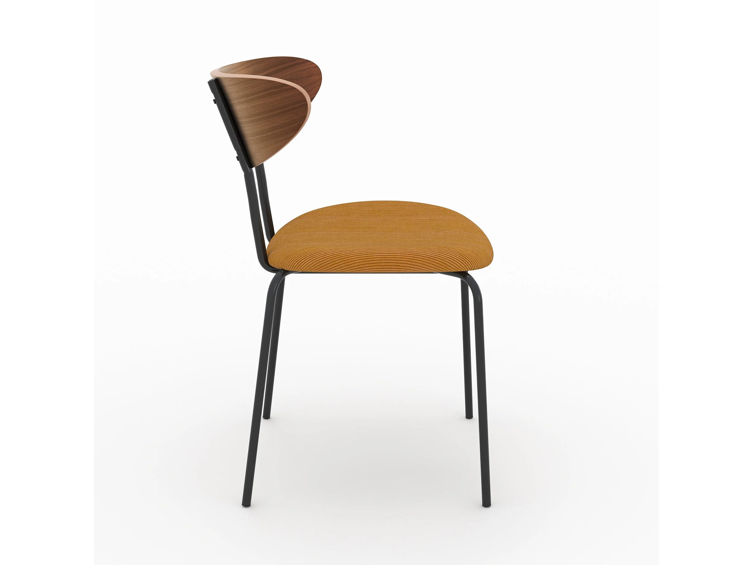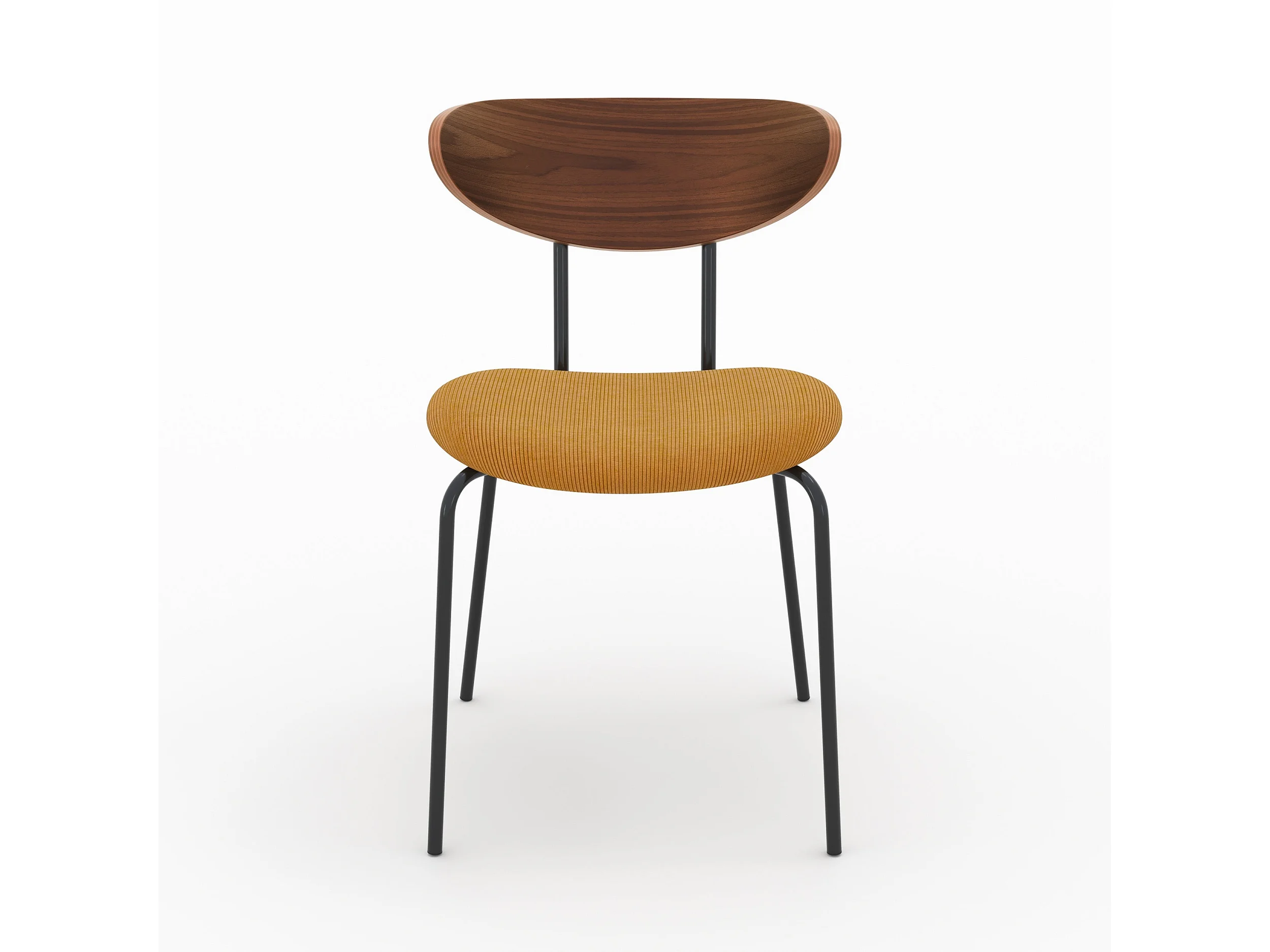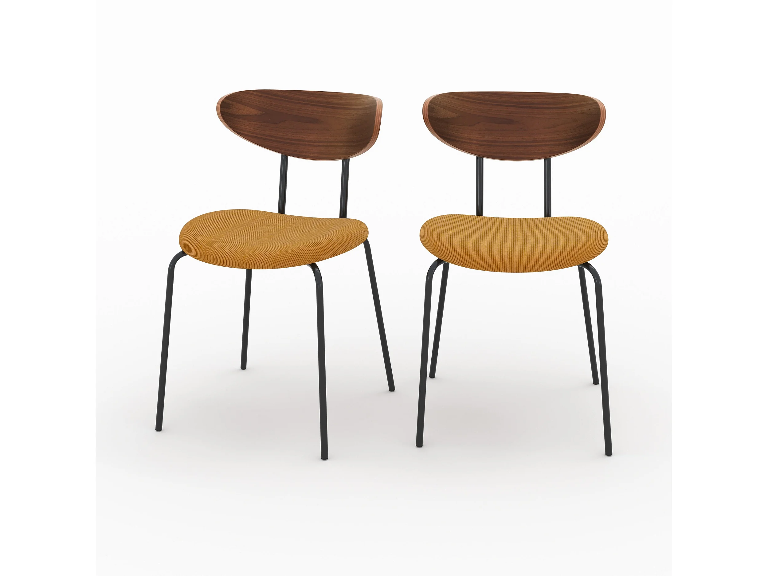 Lot de 2 chaises en velours côtelé jaune moutarde et bois de noyer - Jade
