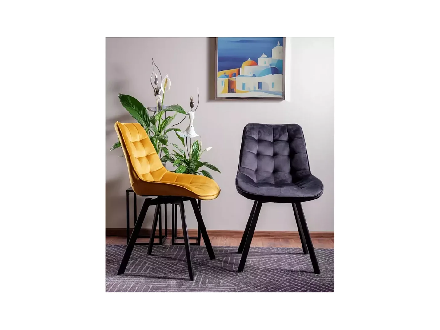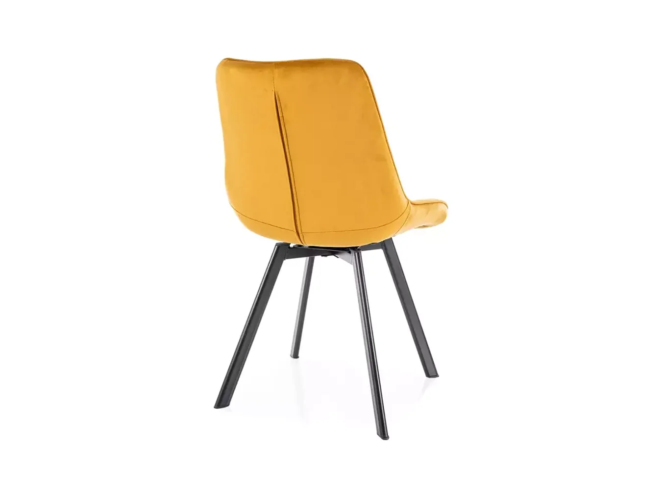 Chaise jaune curry pivotante en velours assise capitonnée pied noir mat style chaleureux MONTAJ