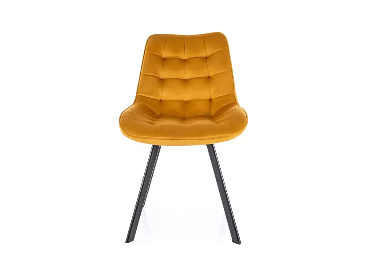 Chaise en velours confortable avec pieds en métal noir Brika – Style moderne-Couleur Jaune moutarde
