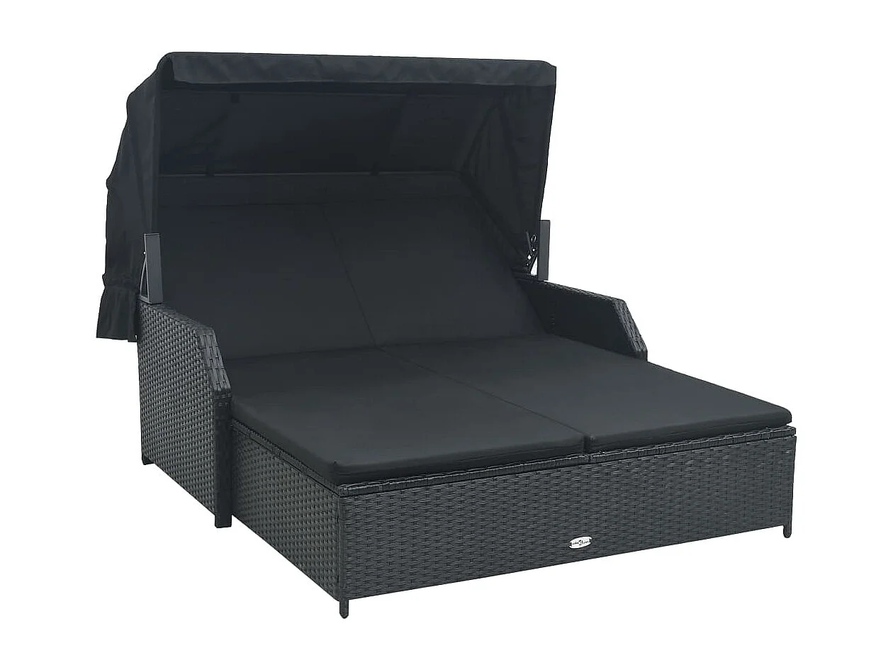 Chaise longue à 2 places avec auvent Résine tressée Noir