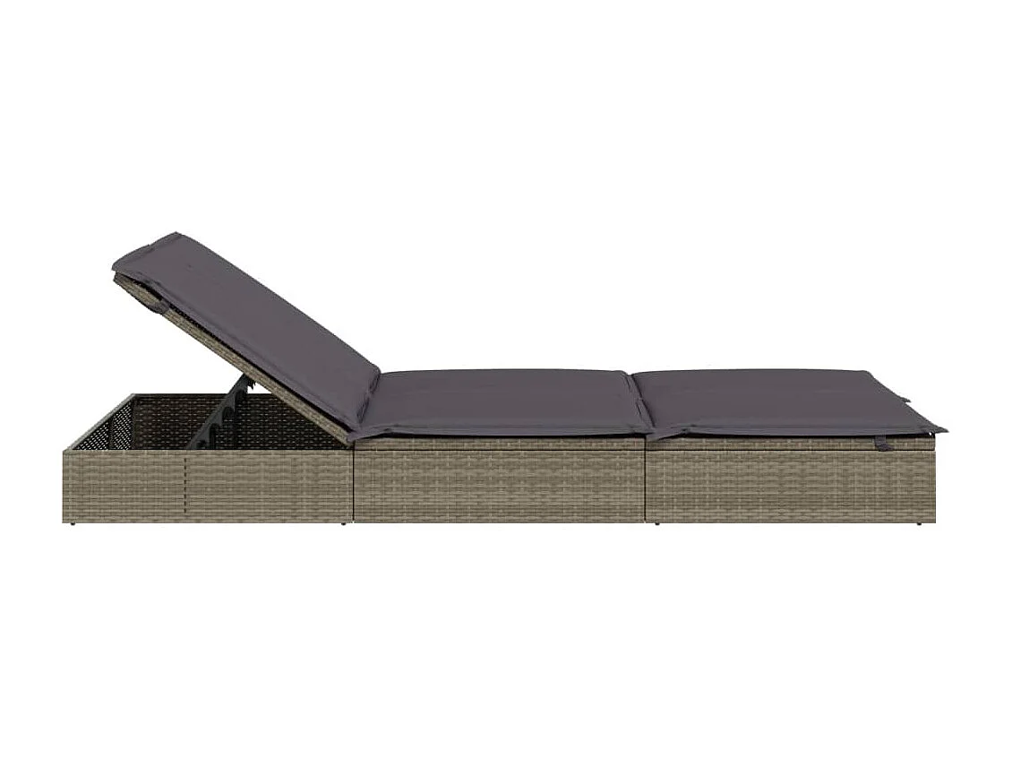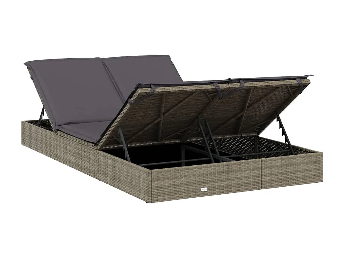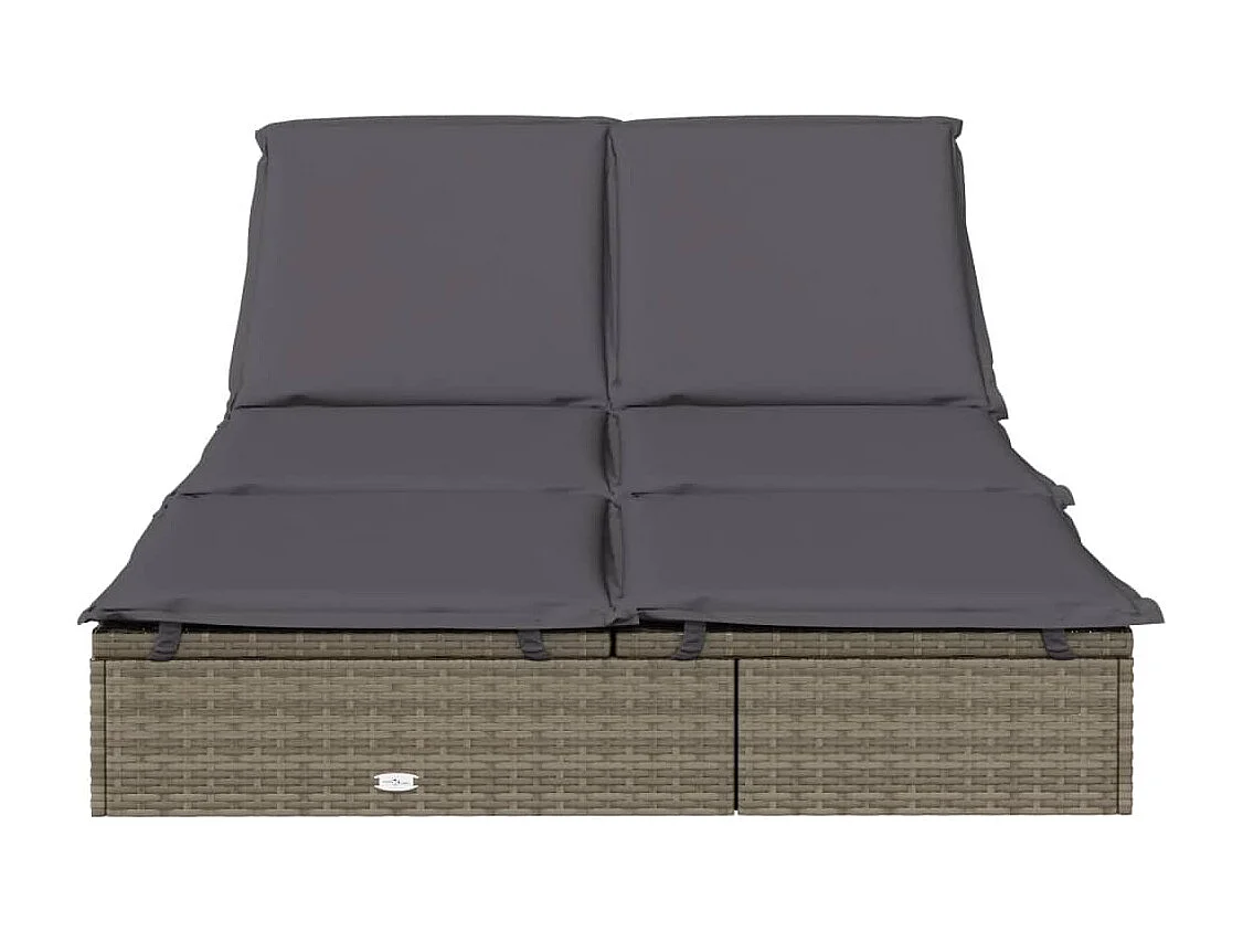 Chaise longue à 2 places avec coussins gris résine tressée
