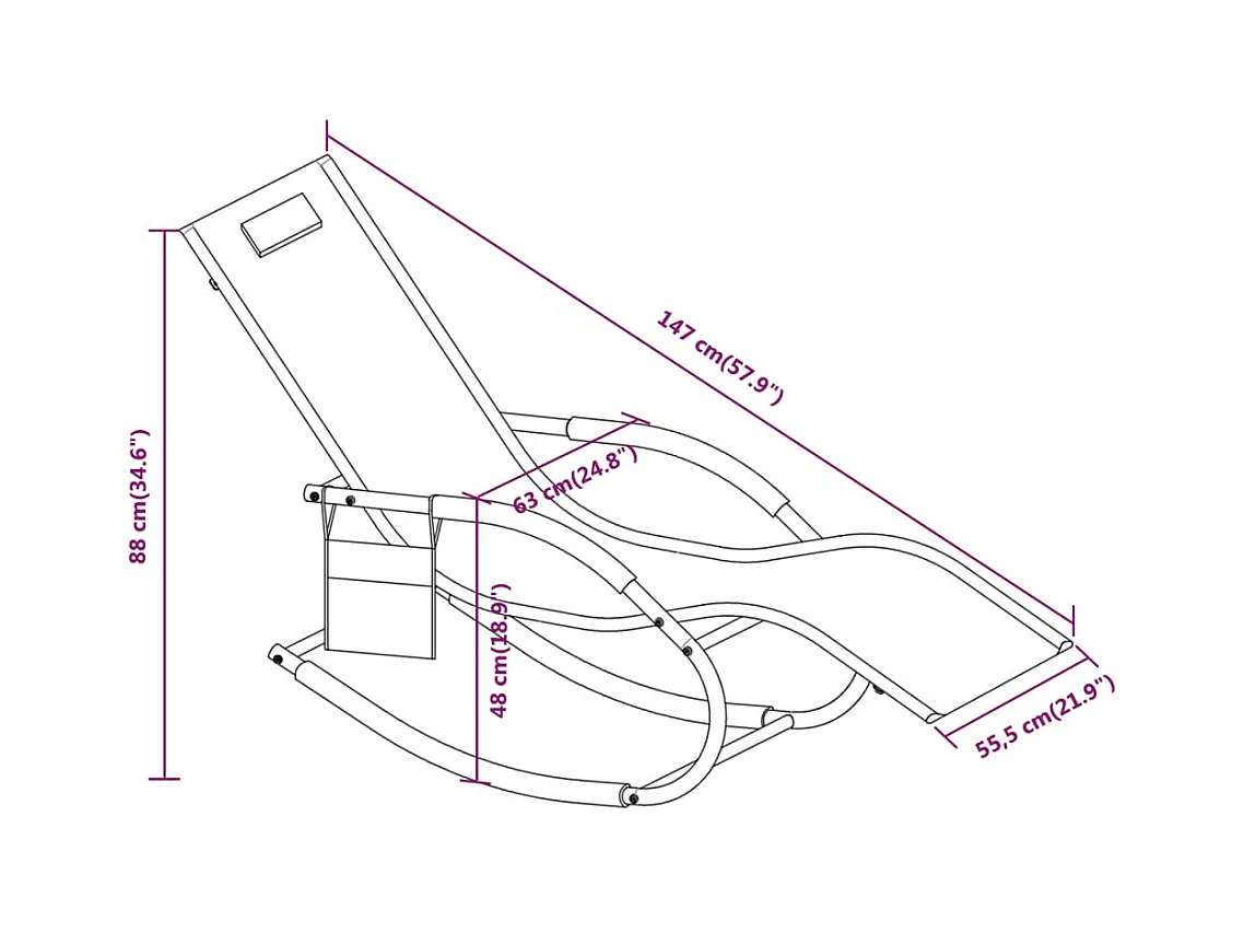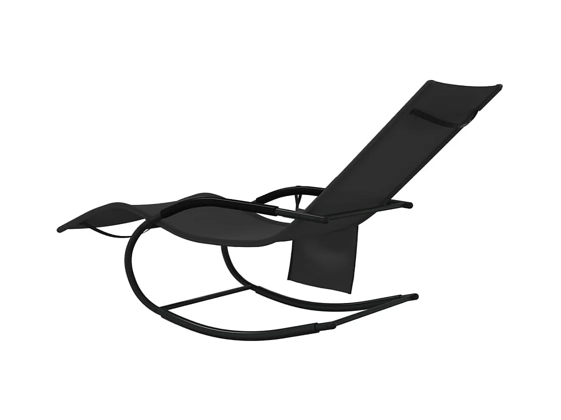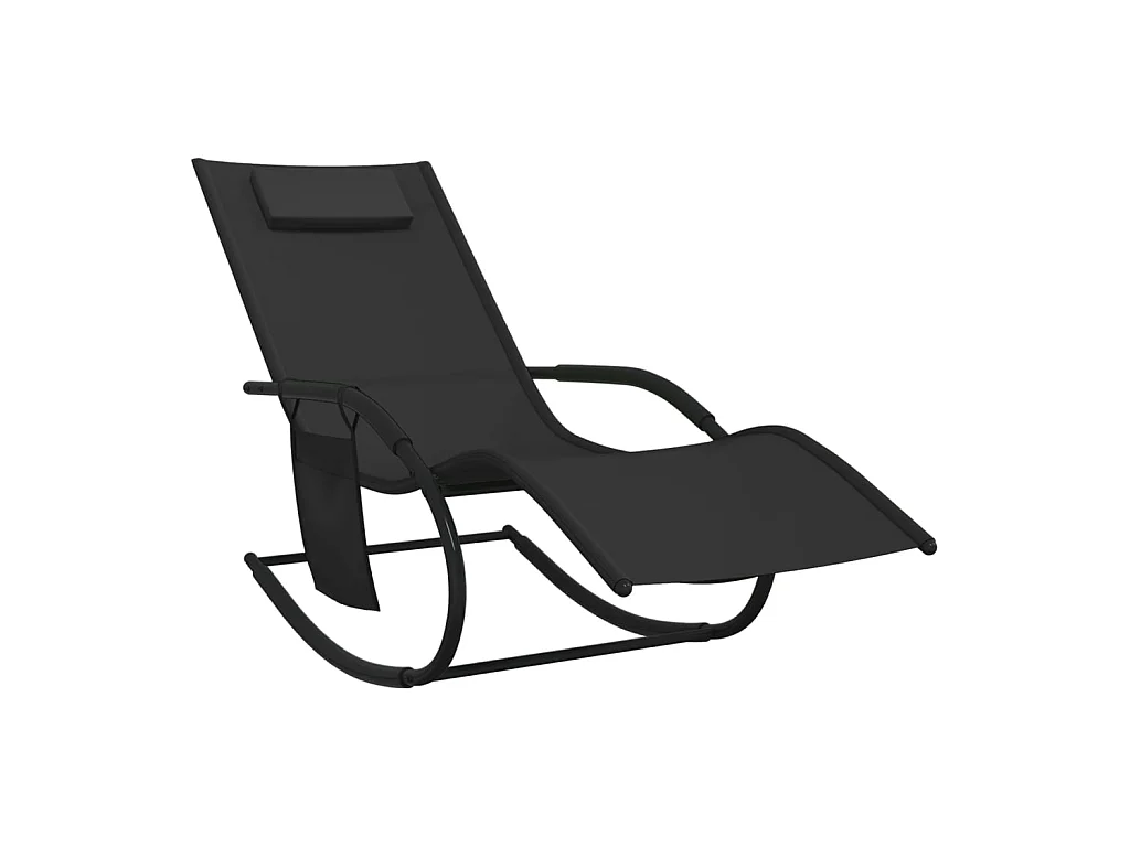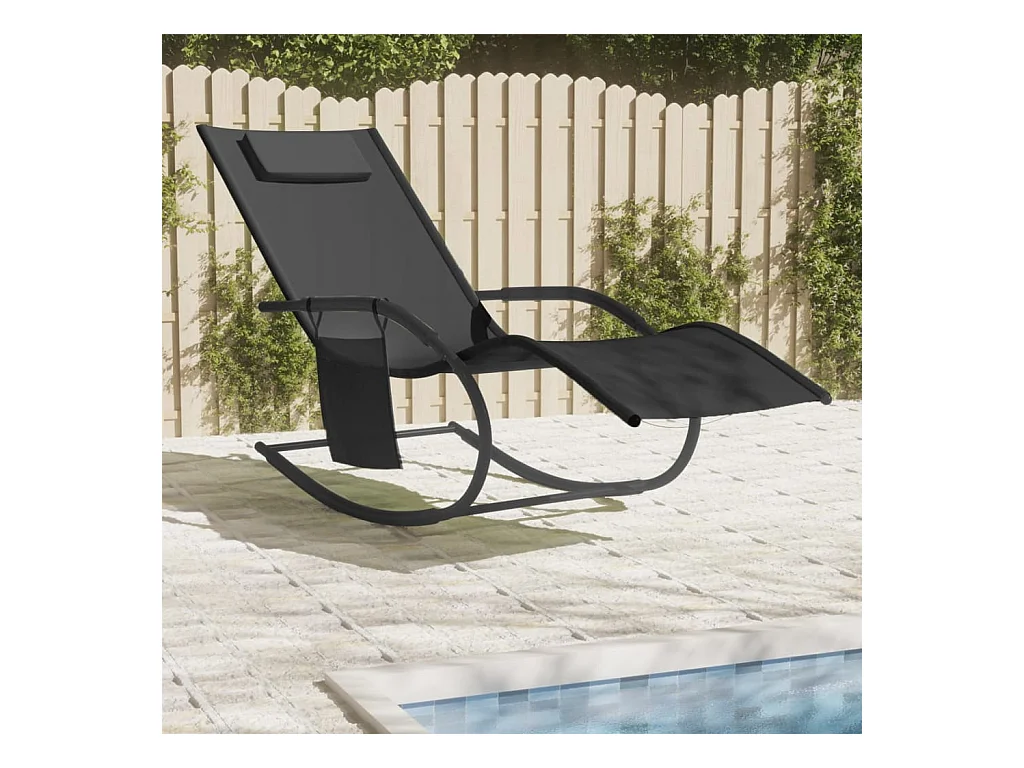 Chaise longue avec auvent noir 167x80x195 cm tissu et acier