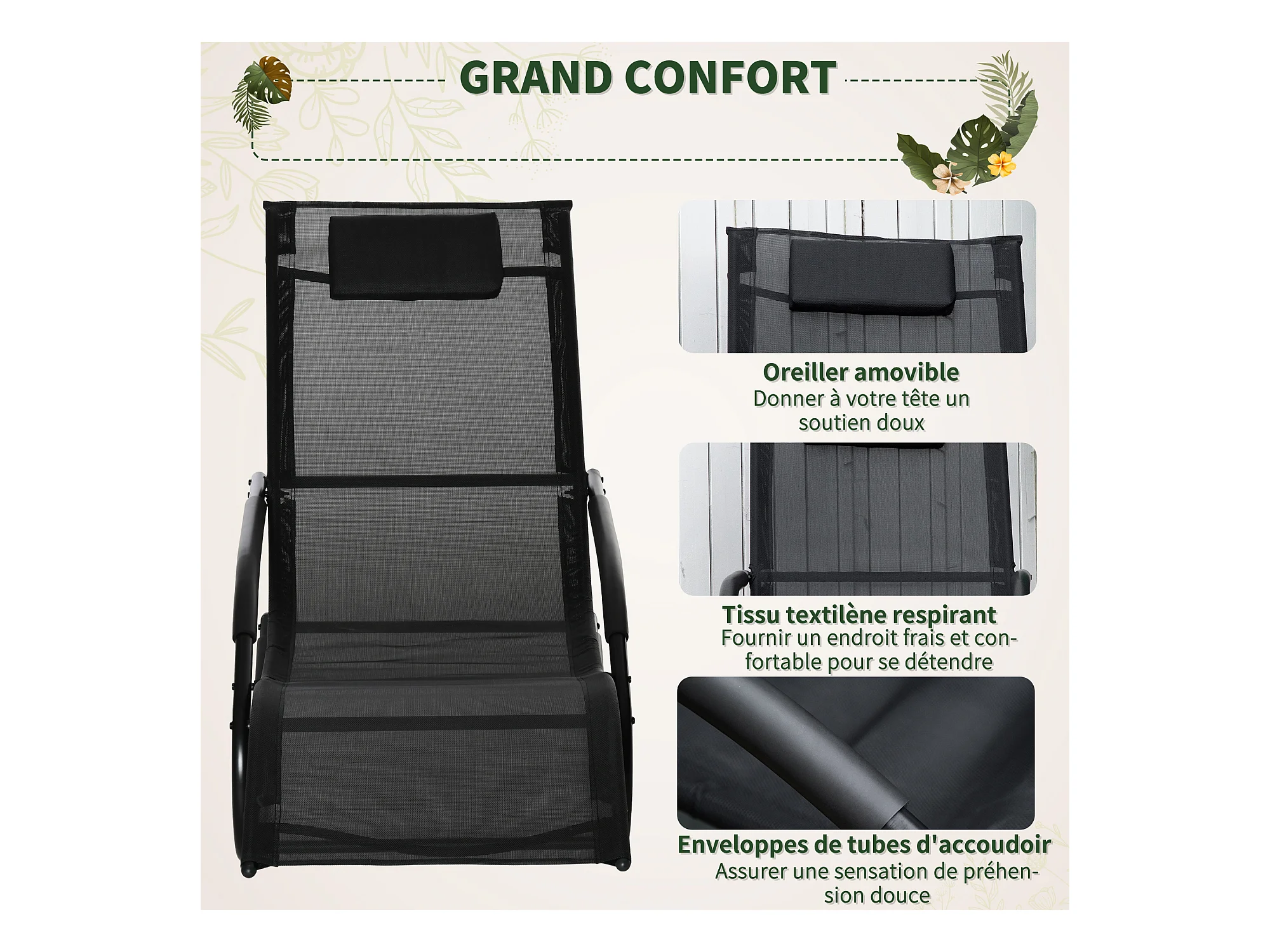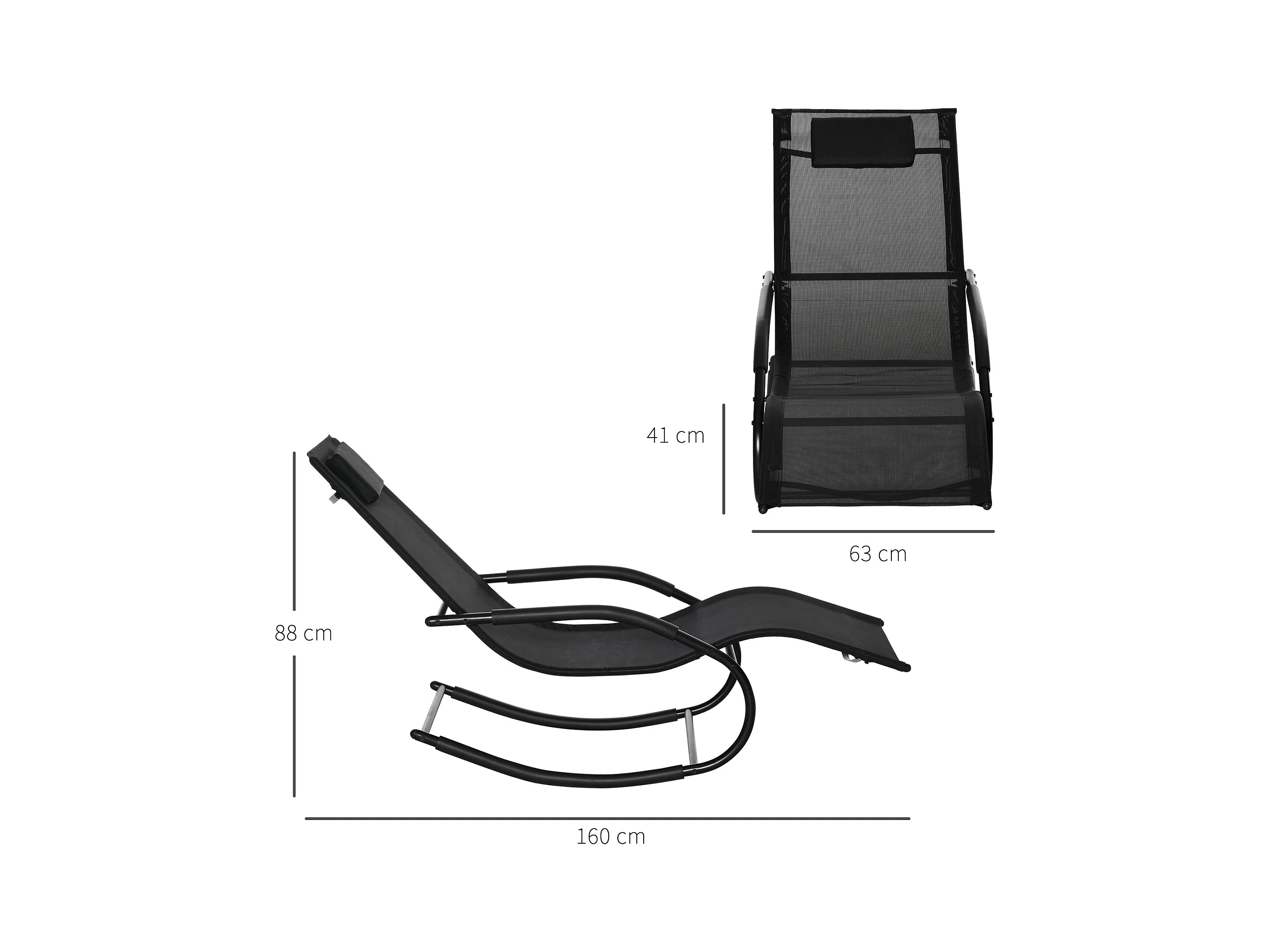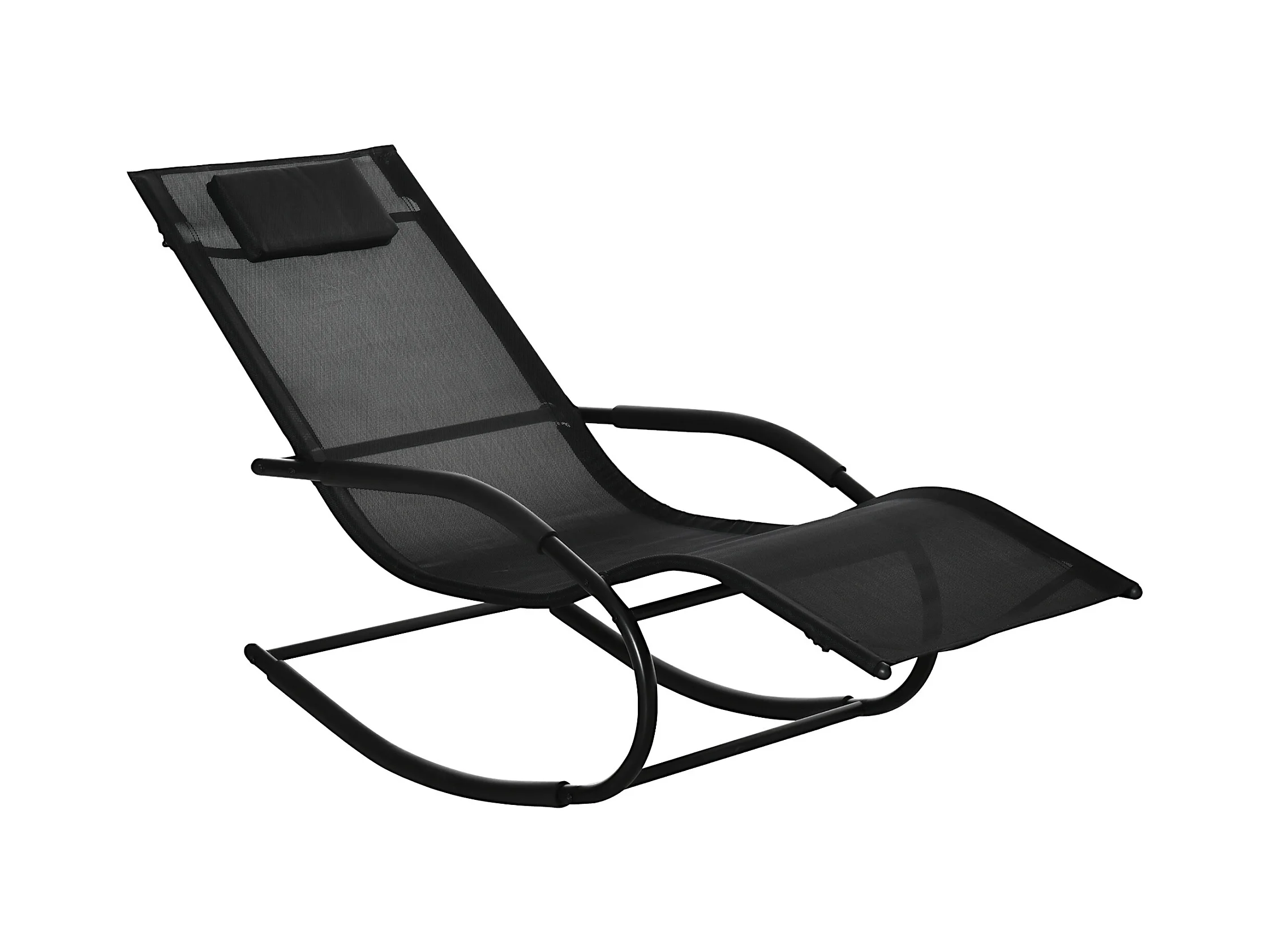 Chaise longue à bascule - rocking chair design - tétière, accoudoirs, assise dossier ergonomique - métal époxy textilène noir