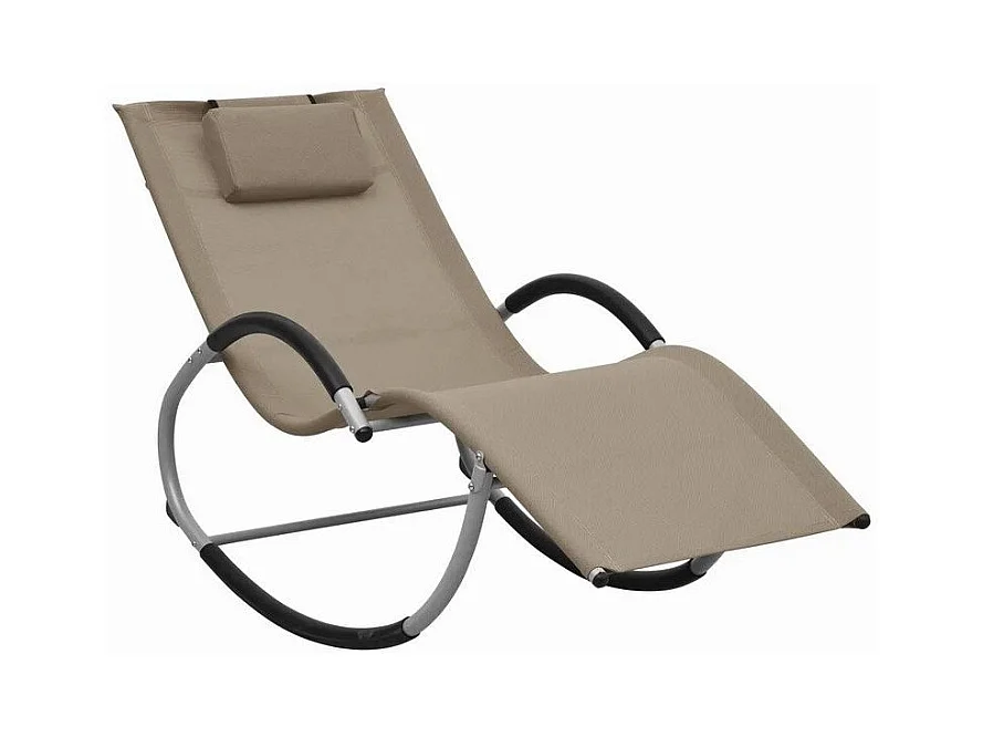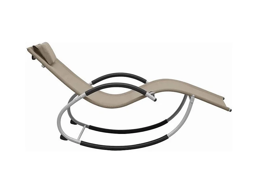 Chaise longue à bascule textilène taupe et métal gris Tinoo