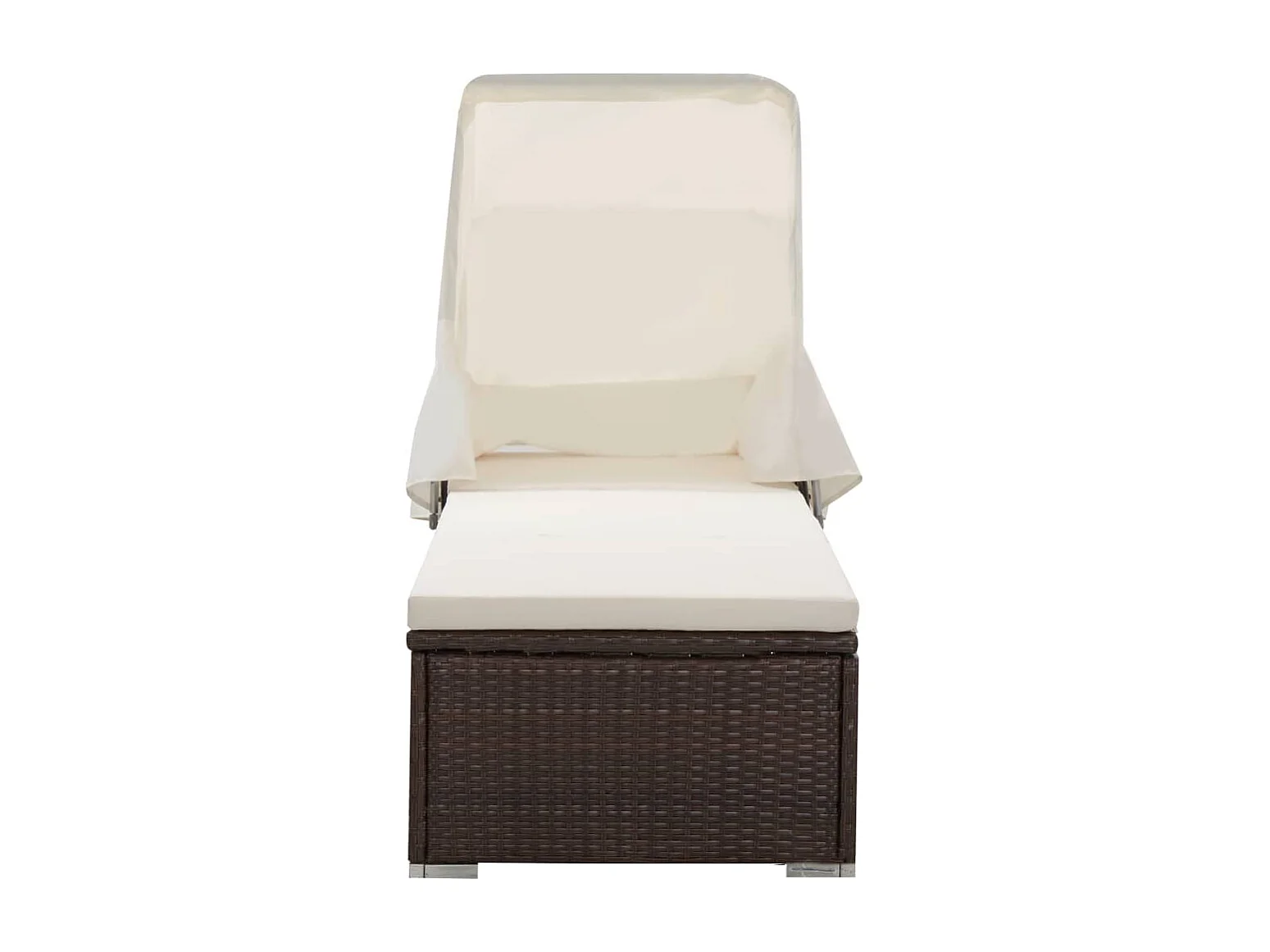 Chaise longue avec auvent et coussin Résine tressée Marron